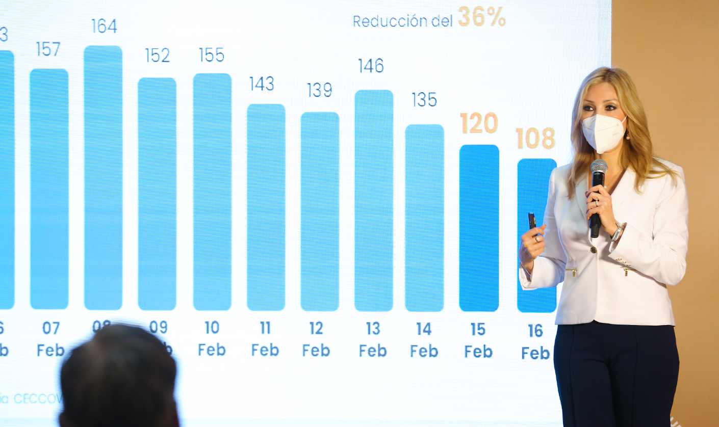 La funcionaria detalló que el promedio de nuevos casos por semana tuvo un descenso del 82 por ciento en las últimas cuatro semanas; mientras que en hospitalizaciones la baja fue del 55 por ciento respecto al 31 de enero; y en pacientes conectados a un ventilador mecánico, del 36 por ciento respecto al punto máximo alcanzado el 3 de febrero.