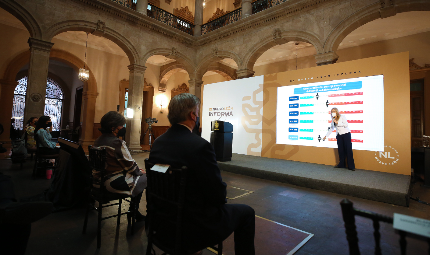 El Semáforo Epidemiológico en Nuevo León pasó de naranja a amarillo, al reportarse 5 indicadores en color verde, 2 en amarillo, 2 en rojo y 1 en naranja.