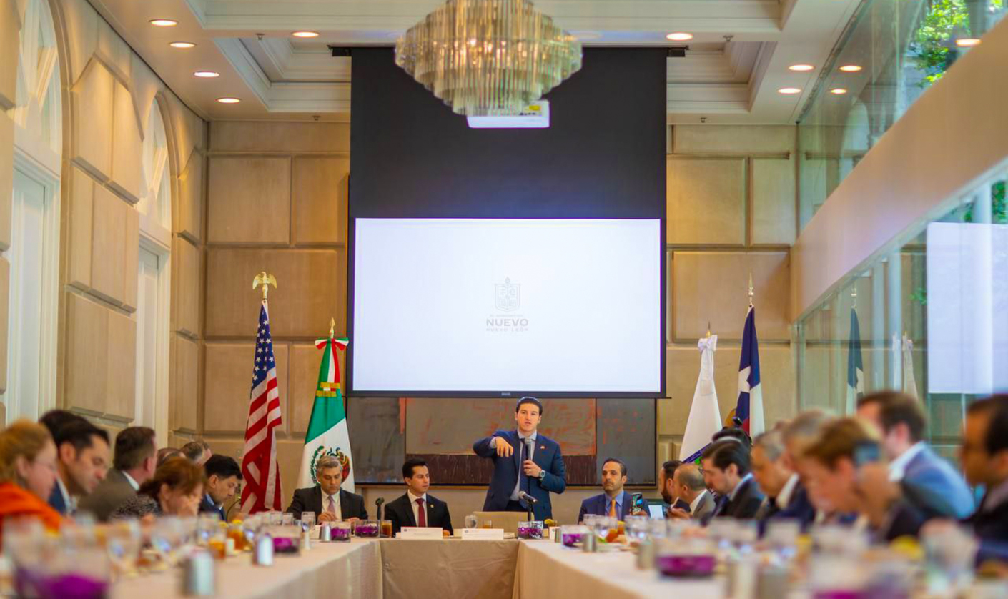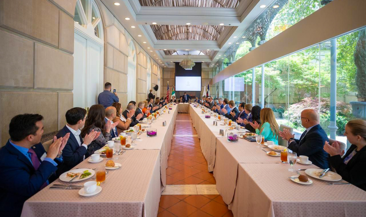 Acompañado del Secretario de Economía, Iván Rivas y el Secretario de Desarrollo Regional y Agropecuario, Marco González, el Gobernador se reunió con empresarios de Dallas, a quienes invitó a instalar sus compañías y centros logísticos en Nuevo León.