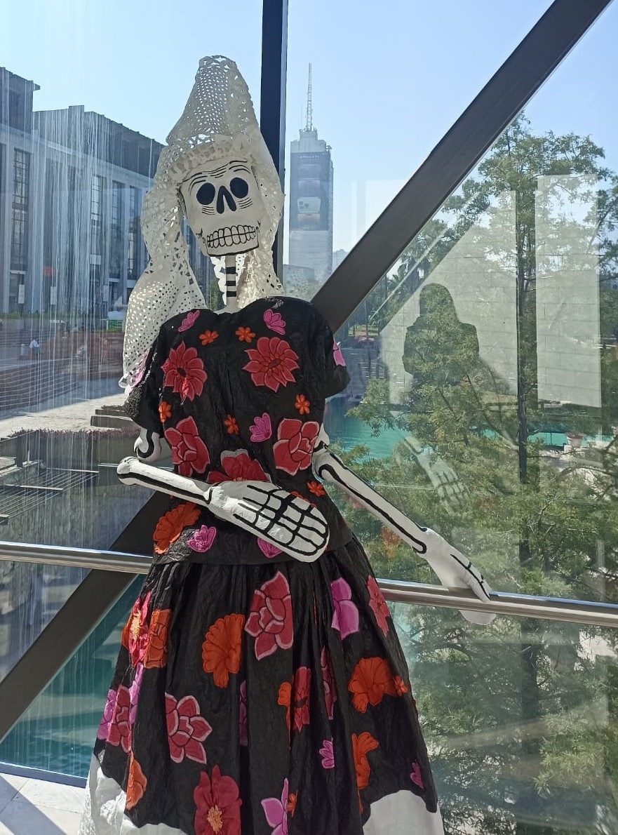 La muerte envió a tres enormes catrinas que con sus huesos y vestidos artesanales multicolores a la espera de los visitantes en el puente que conecta al Museo de Historia Mexicana con el Museo del Noreste, para alegrar su estancia del 3 al 25 de noviembre.