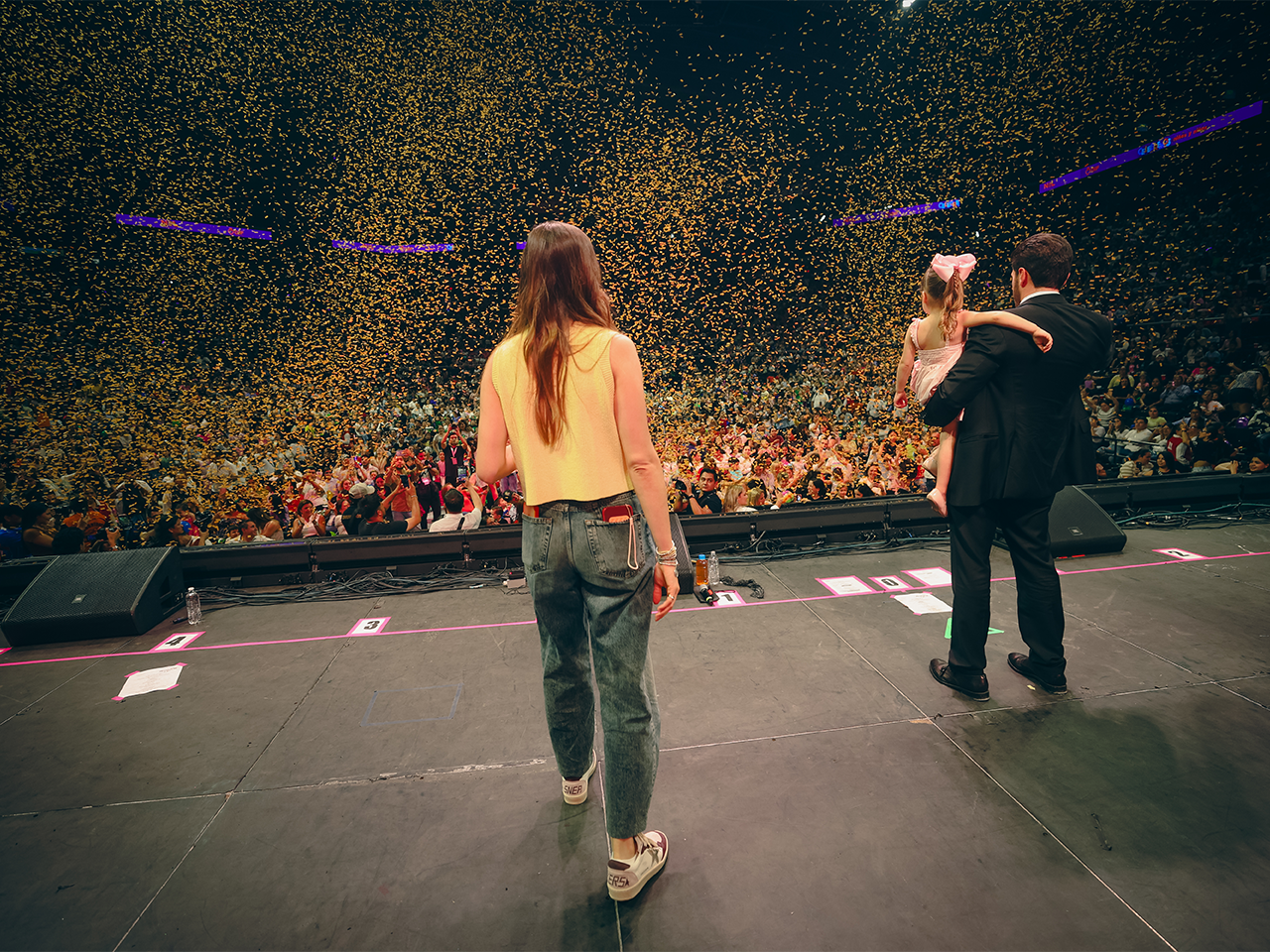 Asimismo, antes del inicio del concierto de Lara Campos, el Gobernador Samuel García y Mariana Rodríguez, sumándose al ambiente de celebración y cercanía con las familias nuevoleonesas realizaron una lluvia de pelotas para regalar a los asistentes.