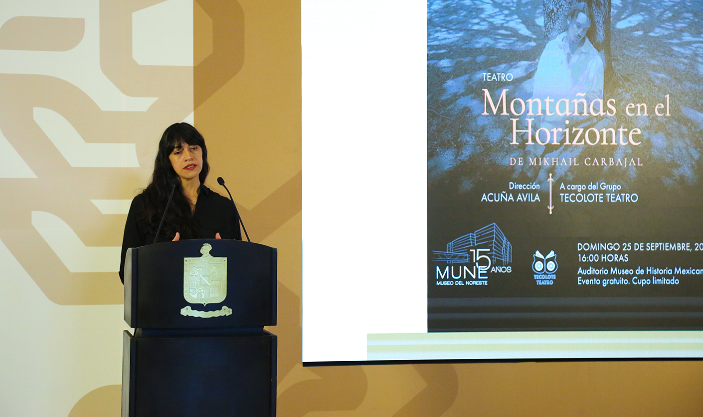 La obra Montañas en el horizonte de Mikhail Carbajal, obra montada por el grupo Tecolote Teatro y dirigida por Acuña Ávila, se presenta en el Auditorio del Museo de Historia a las 16:00 horas, en ella se narra la historia de Gonzalvo de la Nao, Capitán español y Garra-Jaguar, nativo, quienes se encuentran durante la guerra por la colonización del Nuevo Reino de León. Uno está herido y el otro tiene la posibilidad de salvarle la vida. Este momento permite que se conozcan y experimenten el encuentro de dos culturas.
