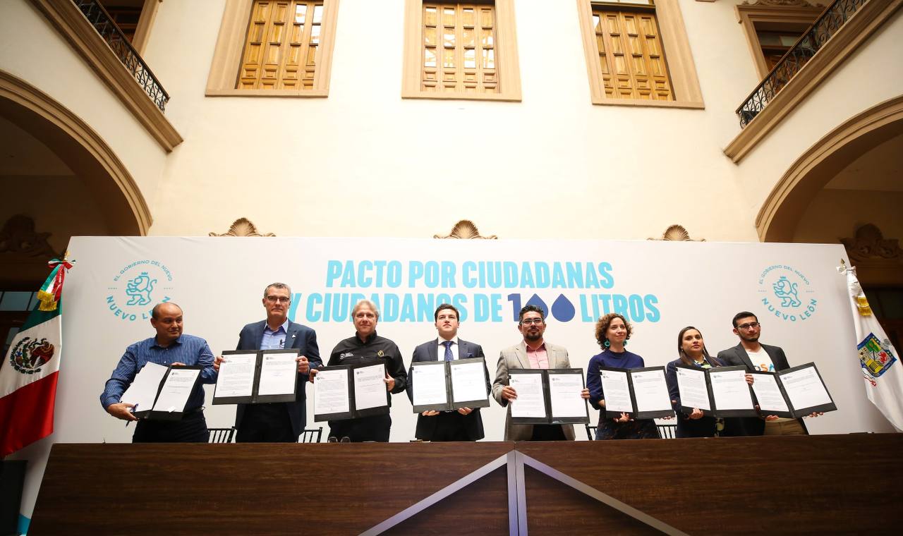 Con el objetivo de fortalecer las estrategias y la cultura del cuidado del agua en Nuevo León, el Gobernador Samuel Alejandro García Sepúlveda, firmó junto a ciudadanos e industriales el pacto ‘Ciudadanas y Ciudadanos de 100 Litros’.