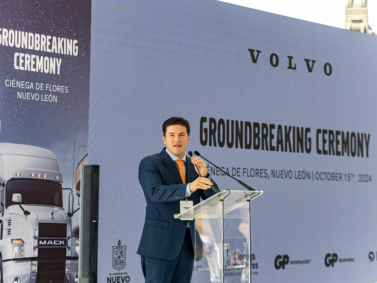 Ciénega de Flores.- El Gobernador de Nuevo León, Samuel Alejandro García Sepúlveda, llevó a cabo la colocación de la primera piedra de la Planta VOLVO Trucks y MACK, en Ciénega de Flores, siendo la segunda planta de esta empresa instalada en México.