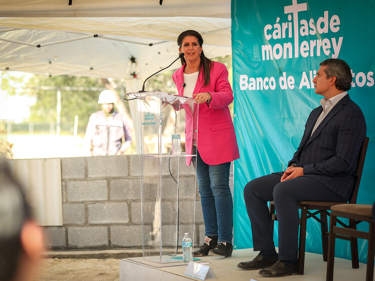 - La Secretaría de Igualdad e Inclusión, que encabeza Martha Herrera, participó en la colocación de la primera piedra del nuevo almacén de frutas y verduras del Banco de Alimentos de Cáritas de Monterrey, que fortalecerá la atención a familias en situación de vulnerabilidad alimentaria.