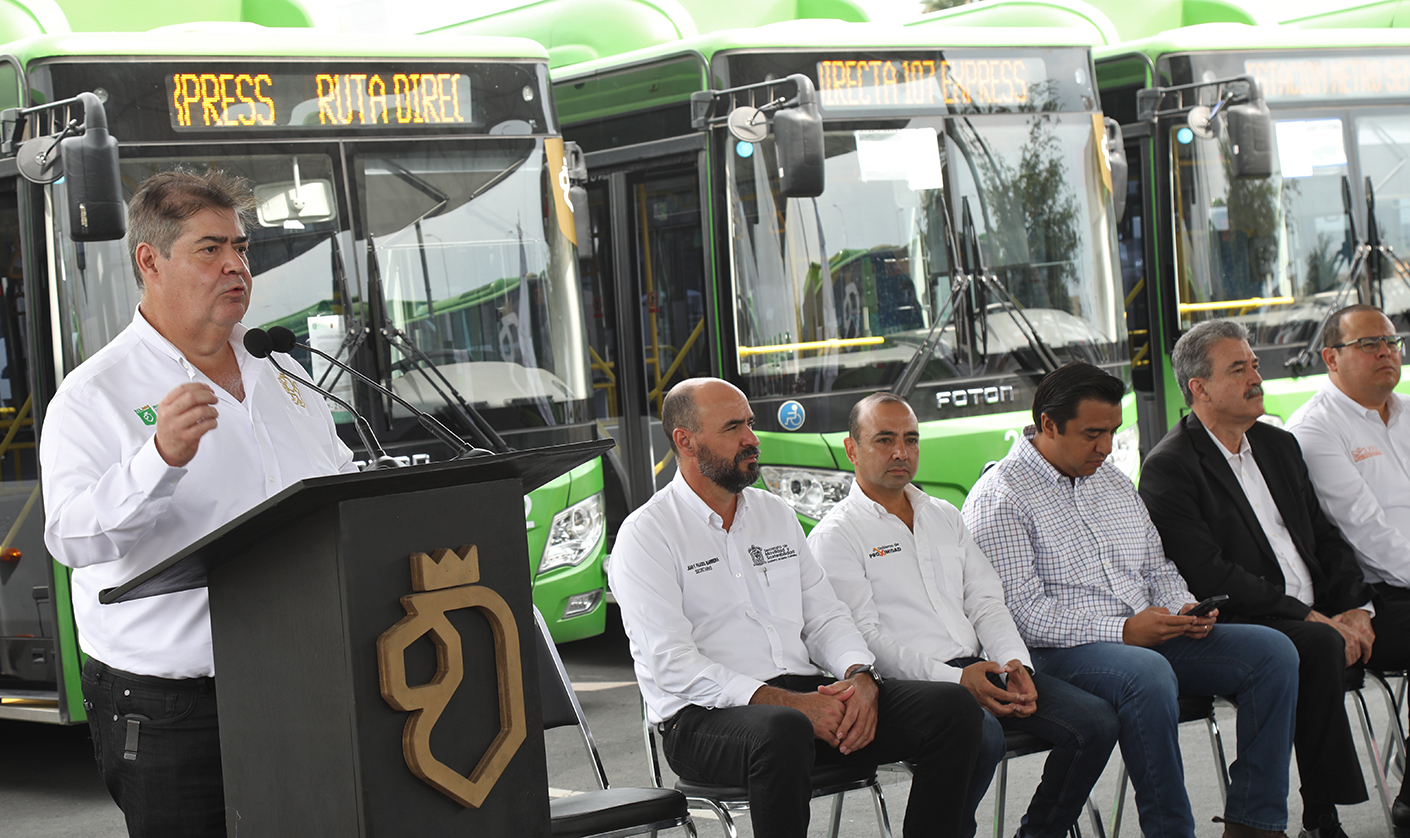Santa Catarina, Nuevo León.- A fin de comunicar al municipio de Santa Catarina, mediante una mejora en el servicio de transporte, el Gobierno del Estado entregó 25 nuevas unidades para operar la ruta directa 107 Express García – Centro.