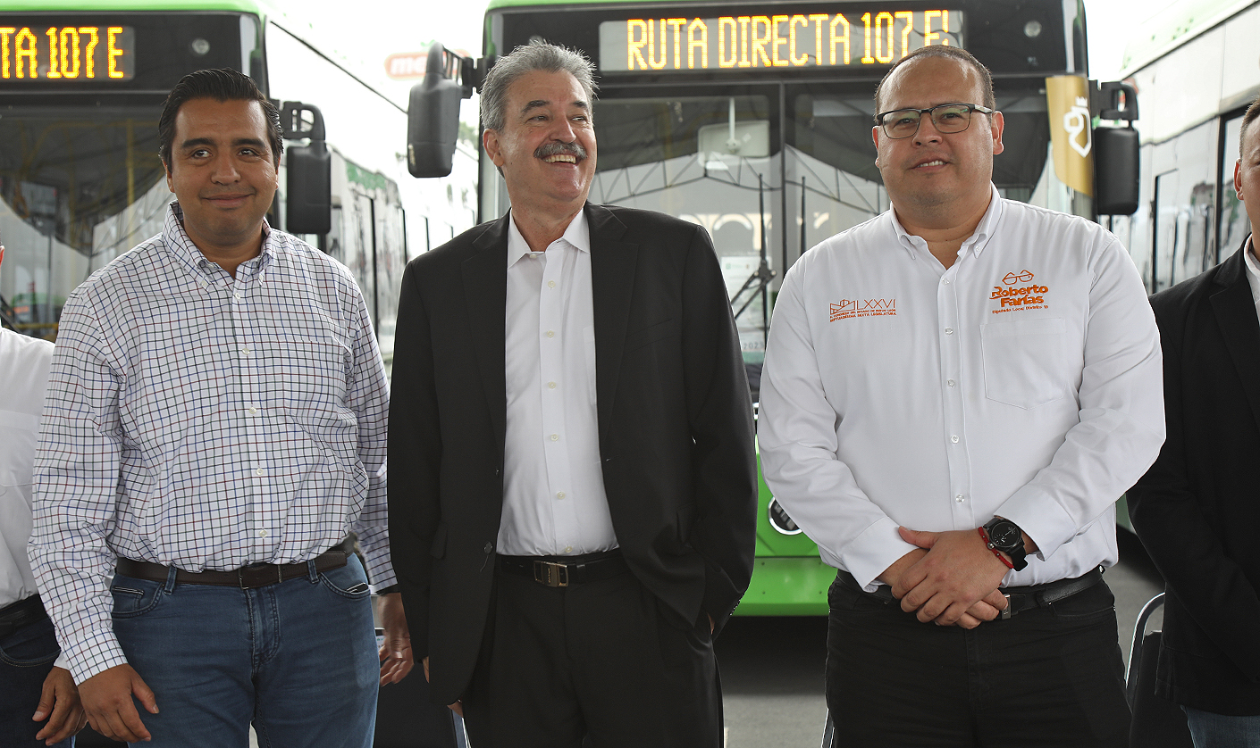 La ruta directa 107 Express brindará servicio a 190 colonias de los cuatro municipios y beneficiará a 87 mil usuarios potenciales, con una frecuencia de paso de 10 minutos.