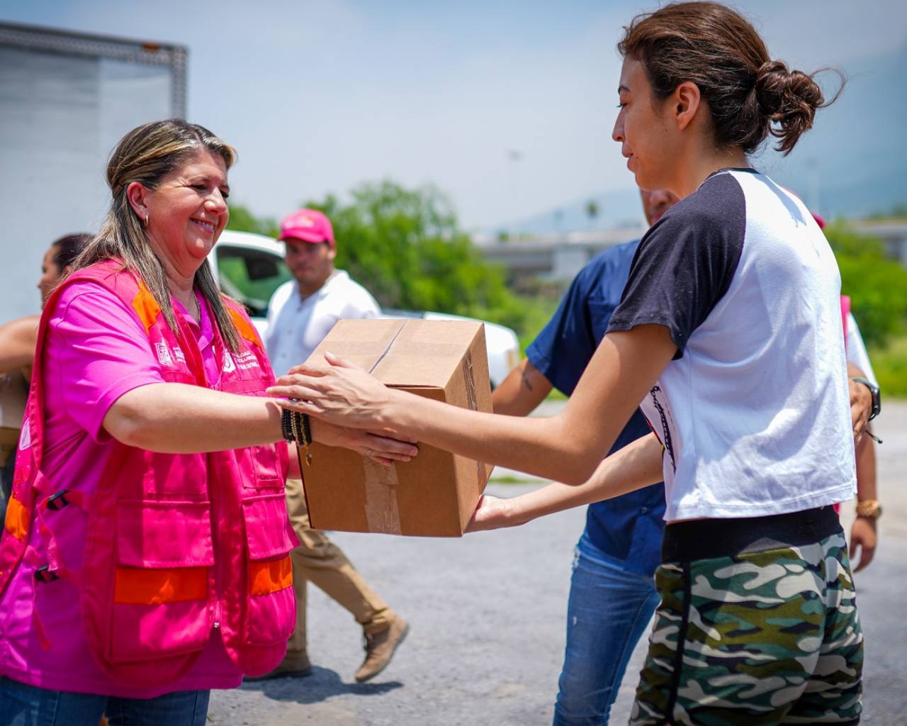 Durante el recorrido se entregaron a las personas paquetes alimentarios, agua embotellada y en garrafón, colchonetas, kits de higiene personal y de primeros auxilios, así como aparatos de movilidad.