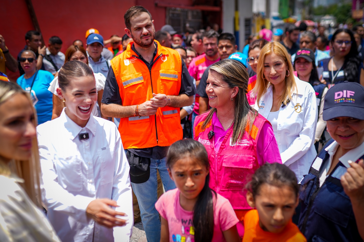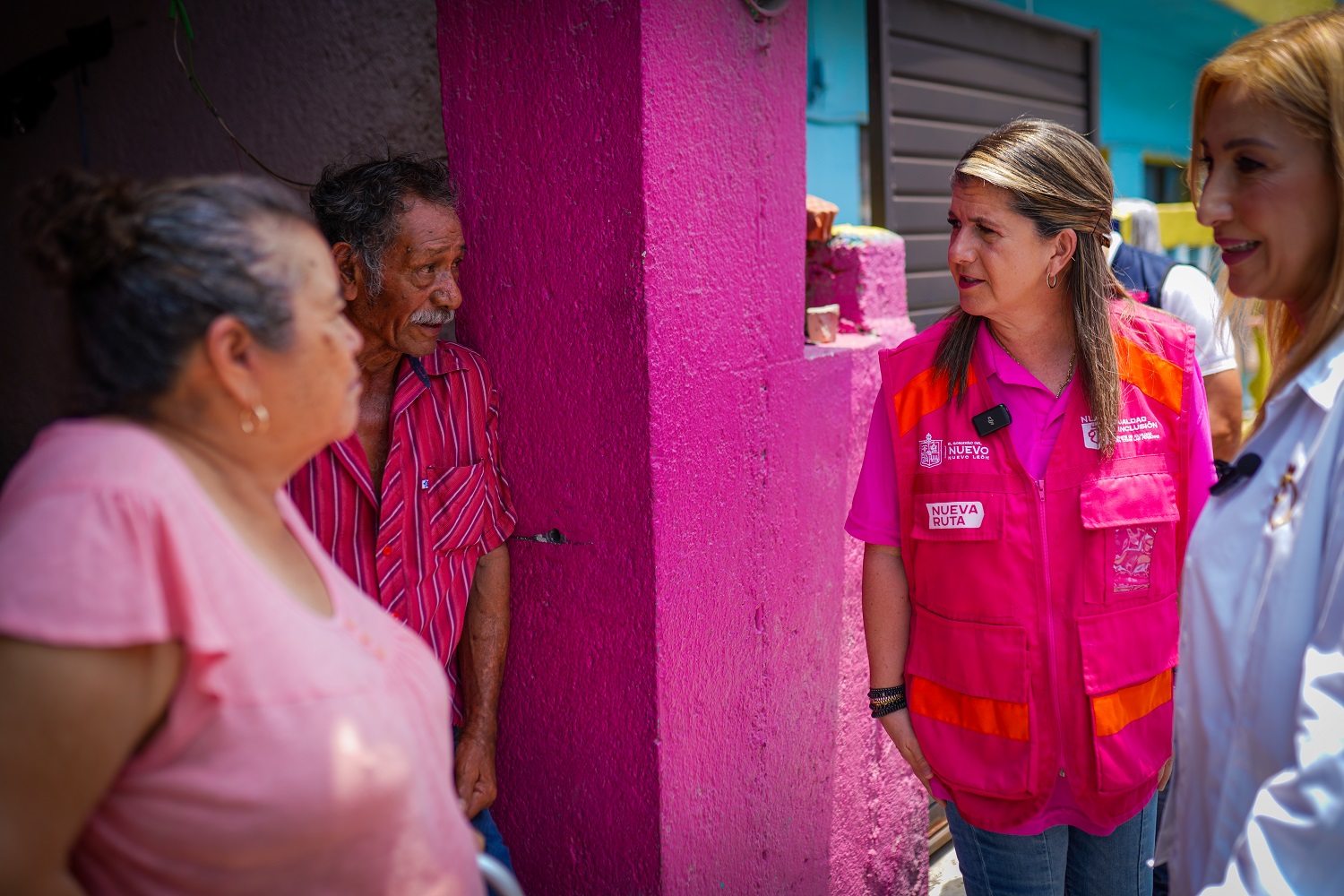 Los titulares de las Secretarías de Participación Ciudadana, Daniel Acosta Fregoso, Martha Herrera, Secretaría de Igualdad e Inclusión, Gloria Bazán, directora del DIF, Alma Rosa Marroquín, titular de la Secretaría de Salud recorrieron con sus equipos de trabajo la zona de Jardín Morelos, Colonia Benito Juárez, casa por casa, en compañía de Mariana Rodríguez y el alcalde del municipio Jesús Nava.