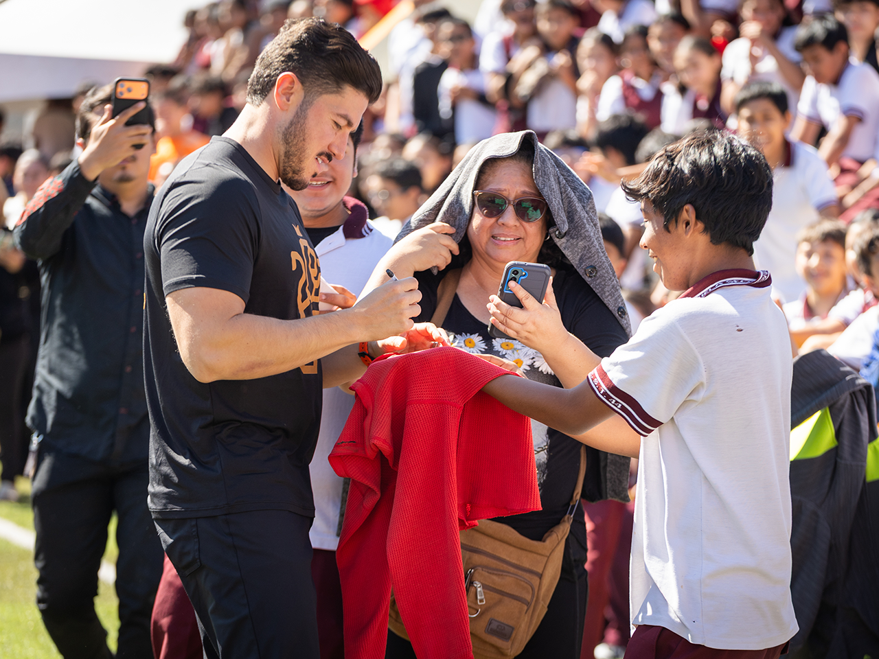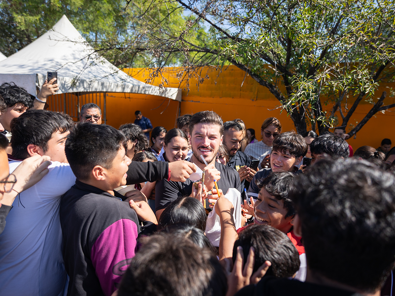 - Convive Samuel García con alumnos de este plantel educativo en una cascarita escolar en el marco de Ponte Nuevo, Ponte Mundial.
