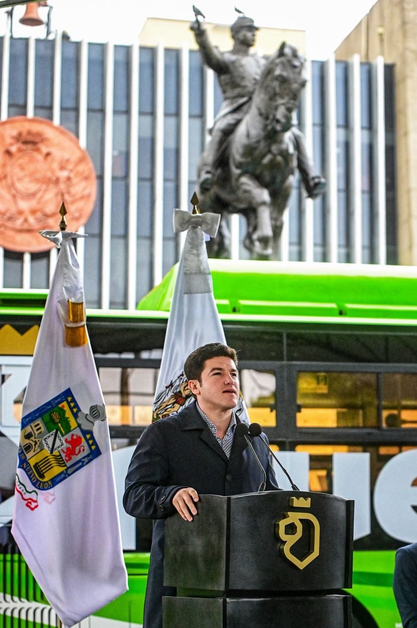 El Gobernador Samuel Alejandro García Sepúlveda encabezó la entrega de 25 nuevas unidades a la empresa Transregio, lo que marca las primeras acciones de la reestructura del sistema de transporte público y la implementación del pago por kilómetro recorrido.
