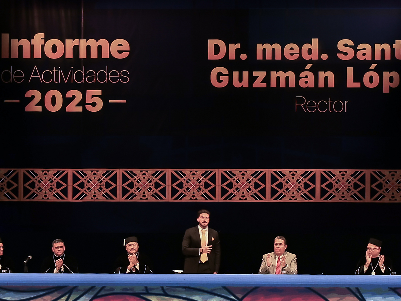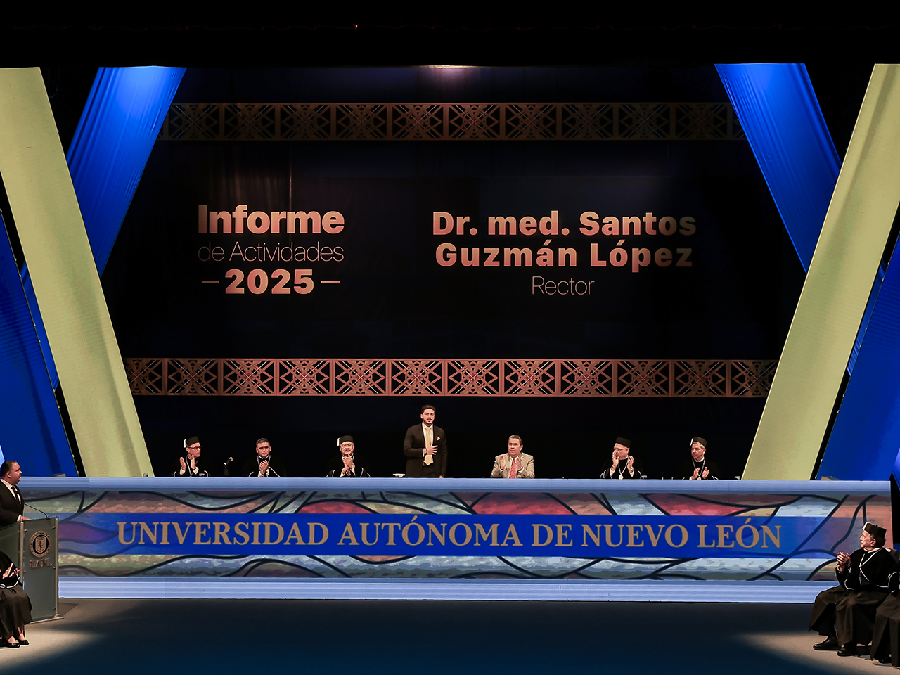 Asistieron a la Sesión Solemne del Honorable Consejo Universitario por el Informe de Actividades del Rector de la UANL, funcionarios federales, estatales y municipales; legisladores locales y federales, miembros del Consejo Universitario, Junta de Gobierno y estudiantes.