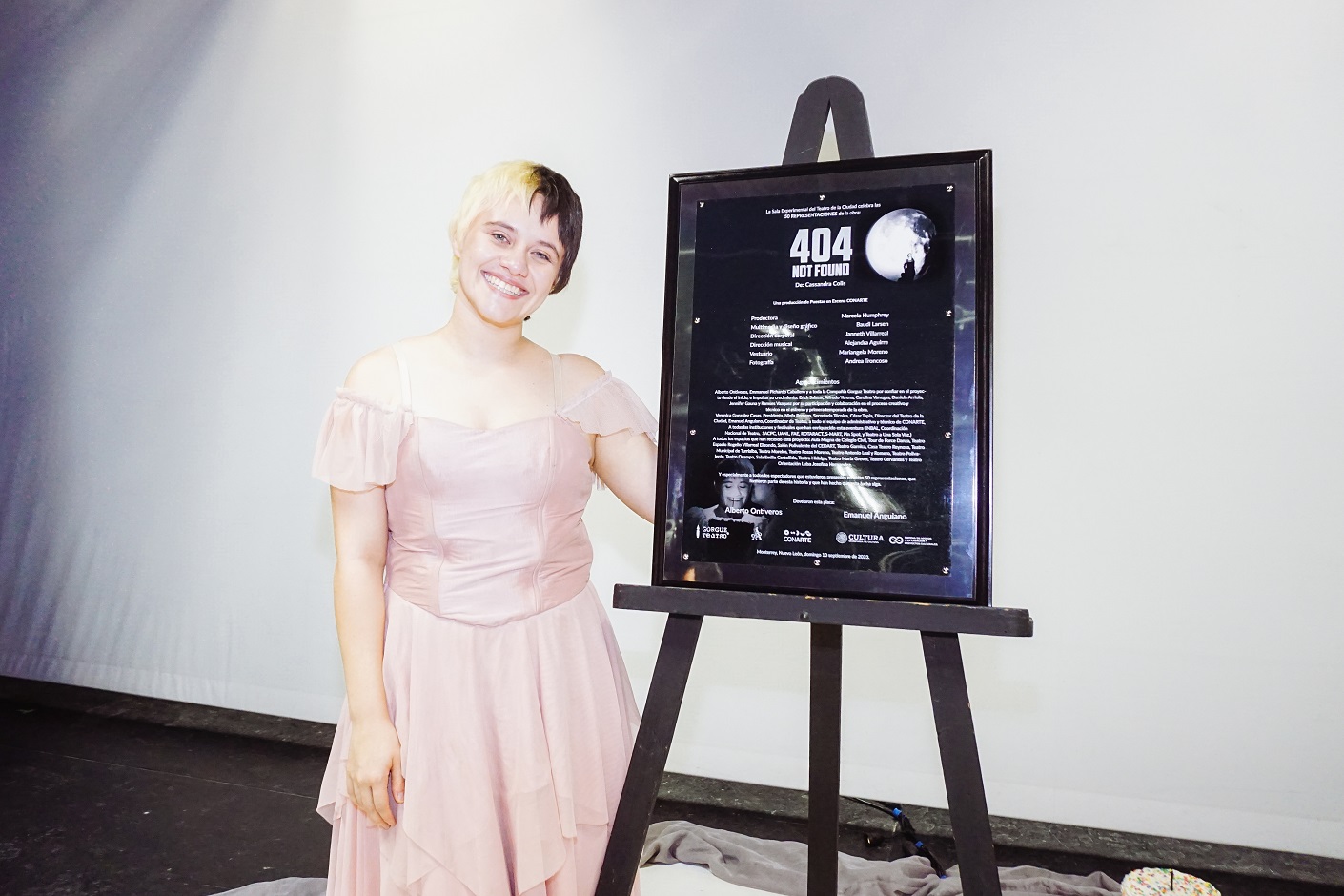 Monterrey, Nuevo León.- Con un lleno total en la Sala Experimental del Teatro de la Ciudad | CONARTE, el monólogo “404 not found” de Cassandra Colis, hizo la develación de placa de las 50 representaciones de la obra que se ha presentado en escenarios locales, nacionales e internacionales.