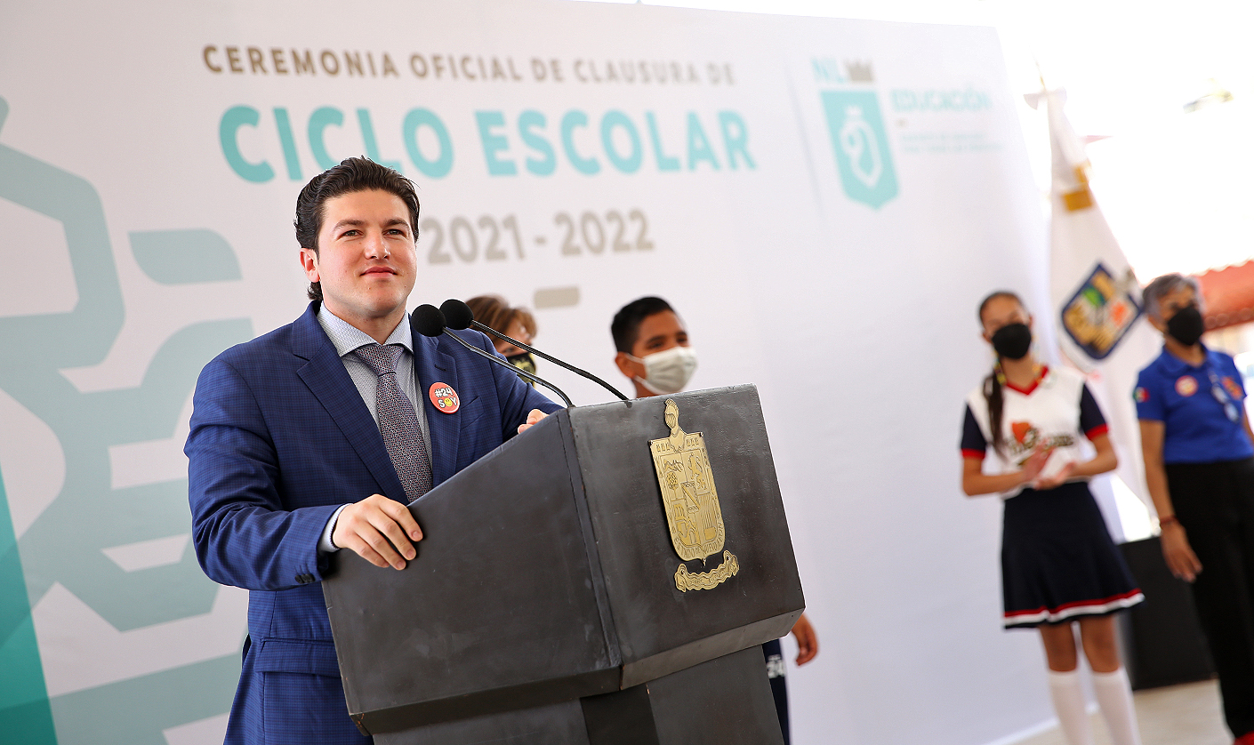 Teniendo como sede la Escuela Secundaria Número 24 Guillermo Prieto en San Nicolás, en donde se llevó a cabo la clausura del Ciclo Escolar 2021-2022, el Gobernador Samuel García Sepúlveda reconoció el esfuerzo de las y los estudiantes, así como el empeño de las y los docentes por sus logros en estos meses de adversidades.
