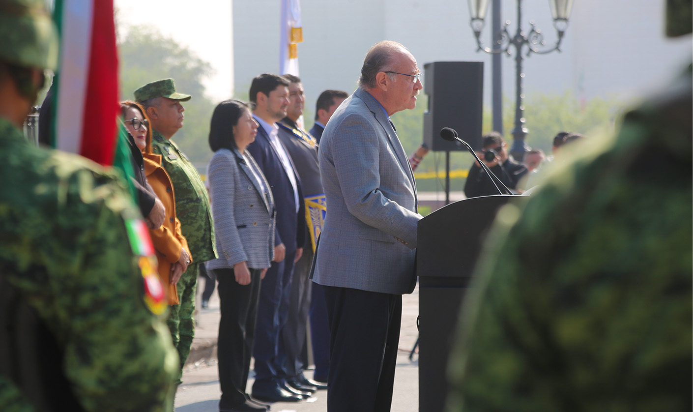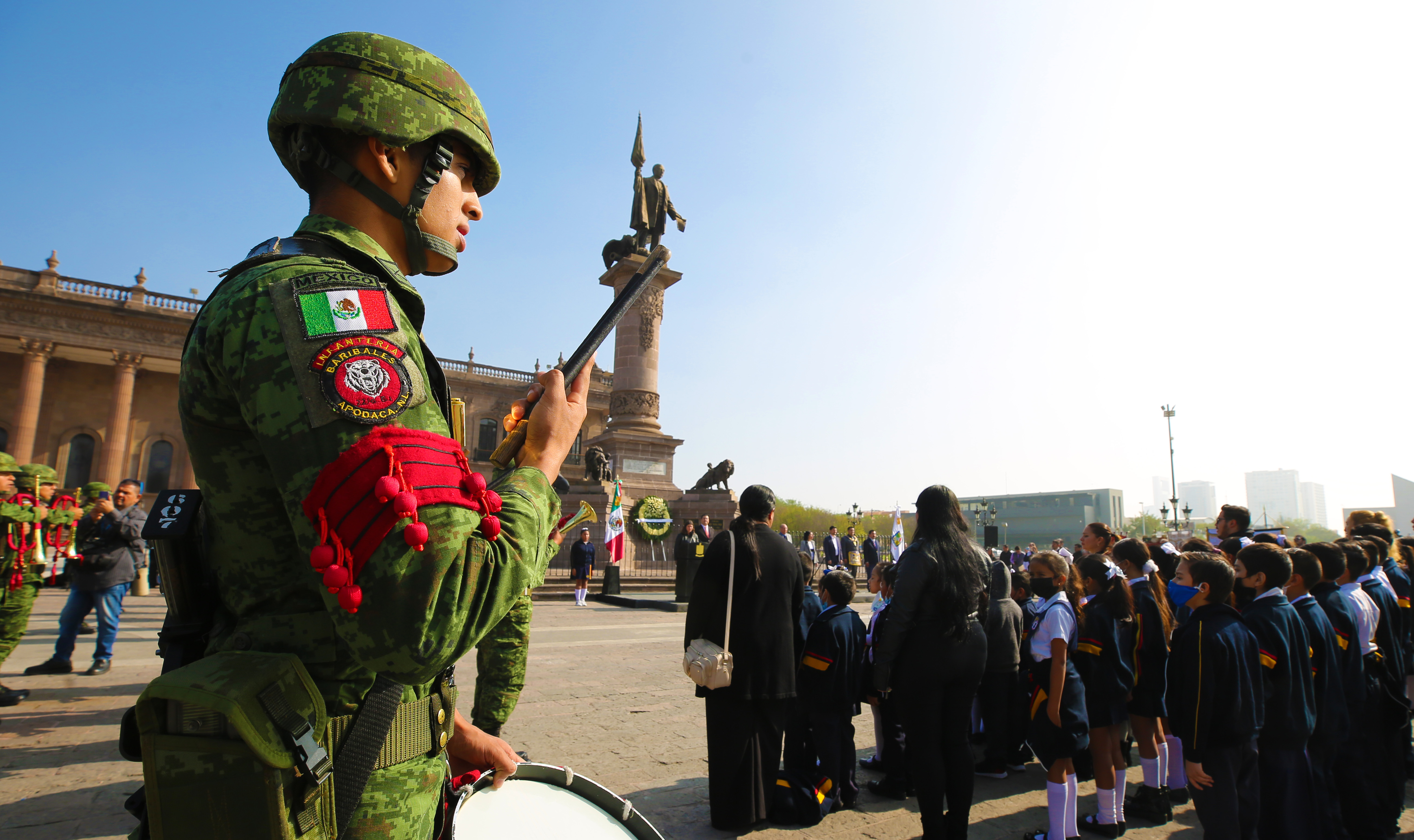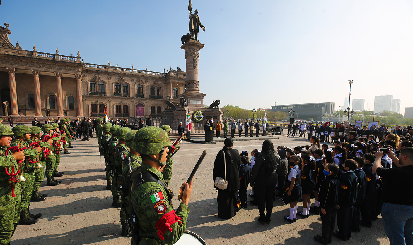 Ante el Monumento del Benemérito de las Américas en la Explanada de los Héroes, las autoridades montaron una guardia de honor para recordar al ilustre Juárez García que nació el 21 de marzo de 1806 en San Pablo Guelatao, Oaxaca; y entre otros cargos fue Presidente de México de 1858 a 1872.