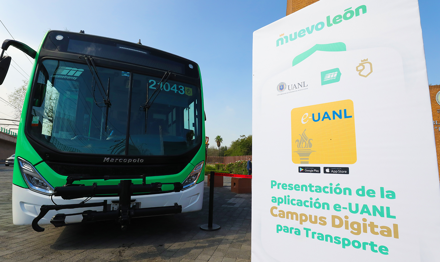 Durante el evento se presentó el nuevo módulo dentro de la app “e-UANL Campus Digital”, que funciona como credencial electrónica y que permite a la comunidad universitaria pagar el servicio público de transporte mediante la generación de un código QR con tarifas preferenciales, a través de su teléfono móvil.
