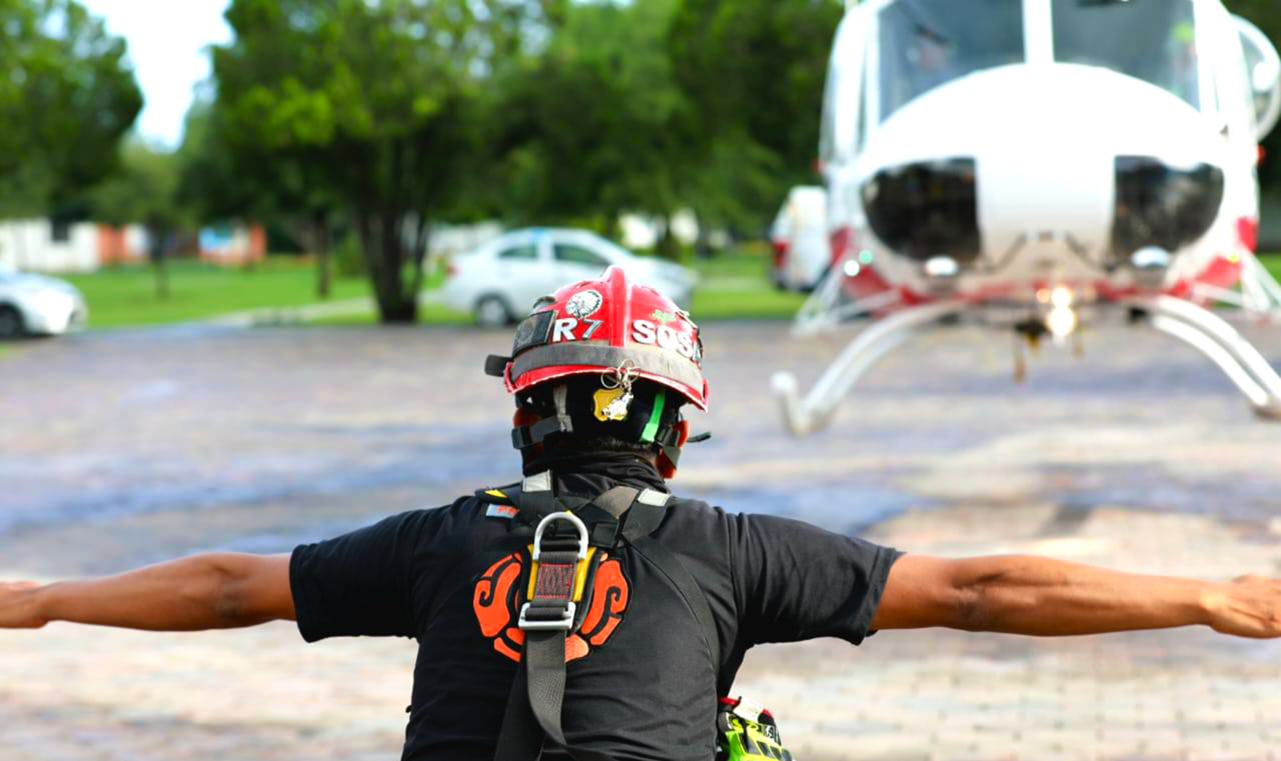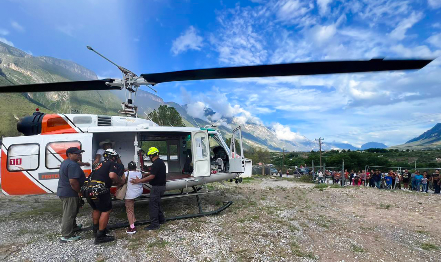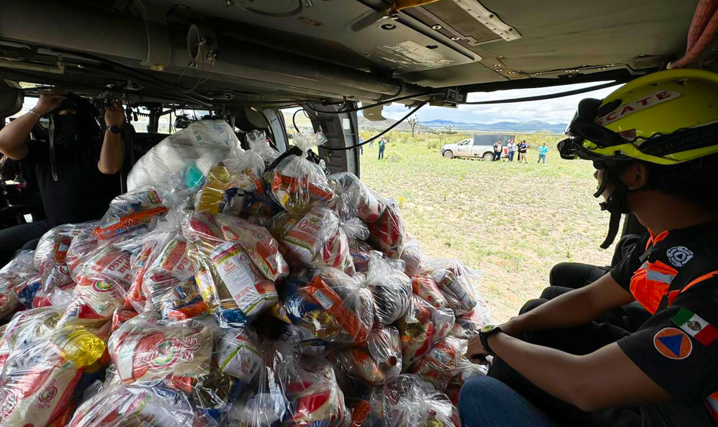 Desde la Base de Operaciones en Galeana en el Ejido Tokio, se despliegan 4 helicópteros de Fuerza Civil y uno de Protección Civil del Estado, y se realiza la distribución de ayuda humanitaria a los municipios de Aramberri y Zaragoza.