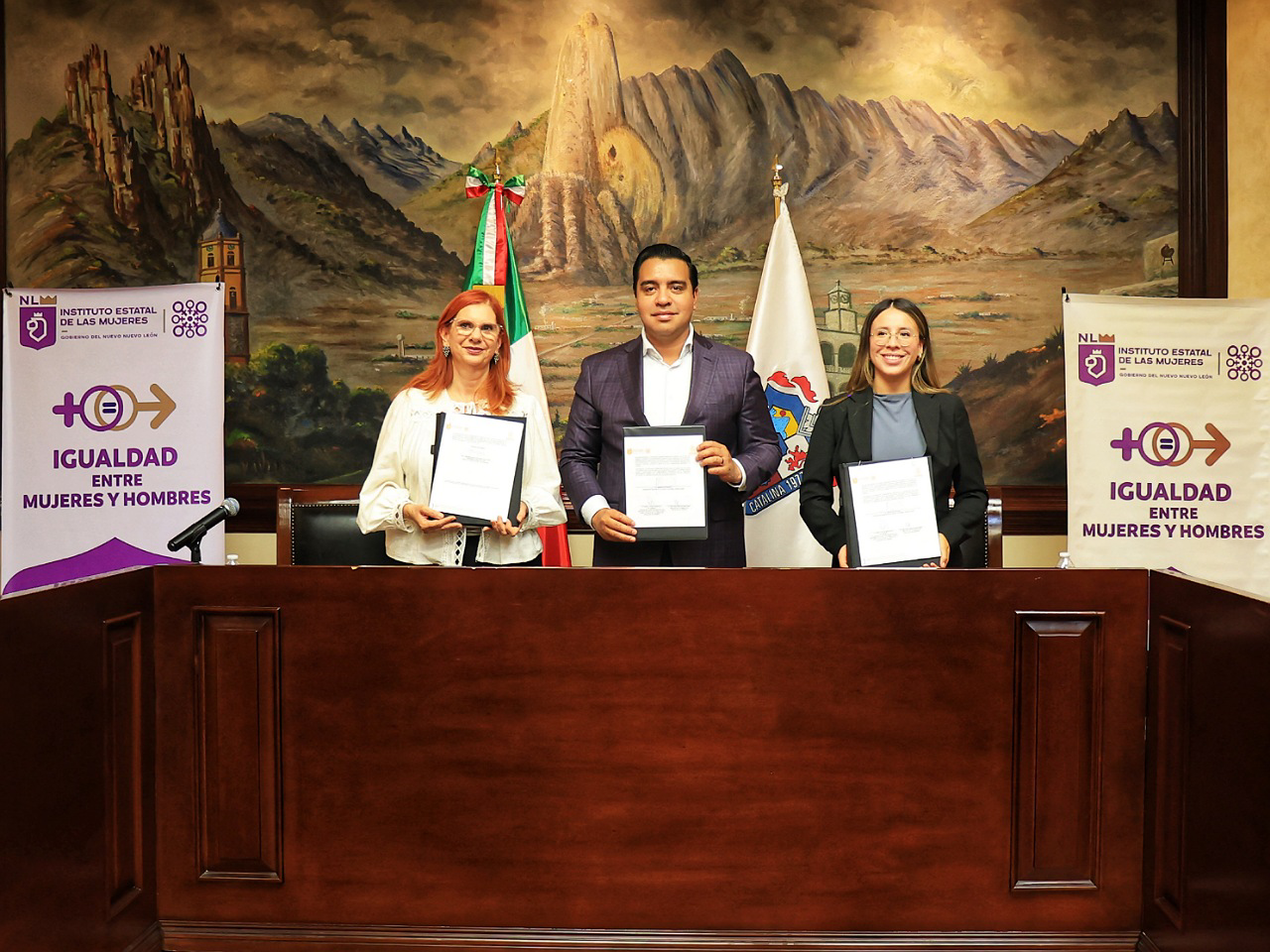 Monterrey, Nuevo León.- Buscando crear un Nuevo León que transversaliza la perspectiva de género, Miriam Hinojosa Dieck, Presidenta Ejecutiva del Instituto Estatal de las Mujeres (IEM); Jesús Nava Rivera, Presidente Municipal de Santa Catarina y Yarely Adlai González Villarreal, Secretaria de las Mujeres del municipio instalaron la Unidad de Igualdad de Género (UIG) como parte de los mecanismos indispensables para el adelanto de las mujeres.