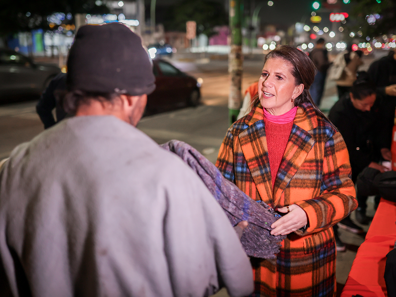 - Martha Herrera, Secretaria de Igualdad e Inclusión, entregó cobijas a las personas en situación vulnerable.
