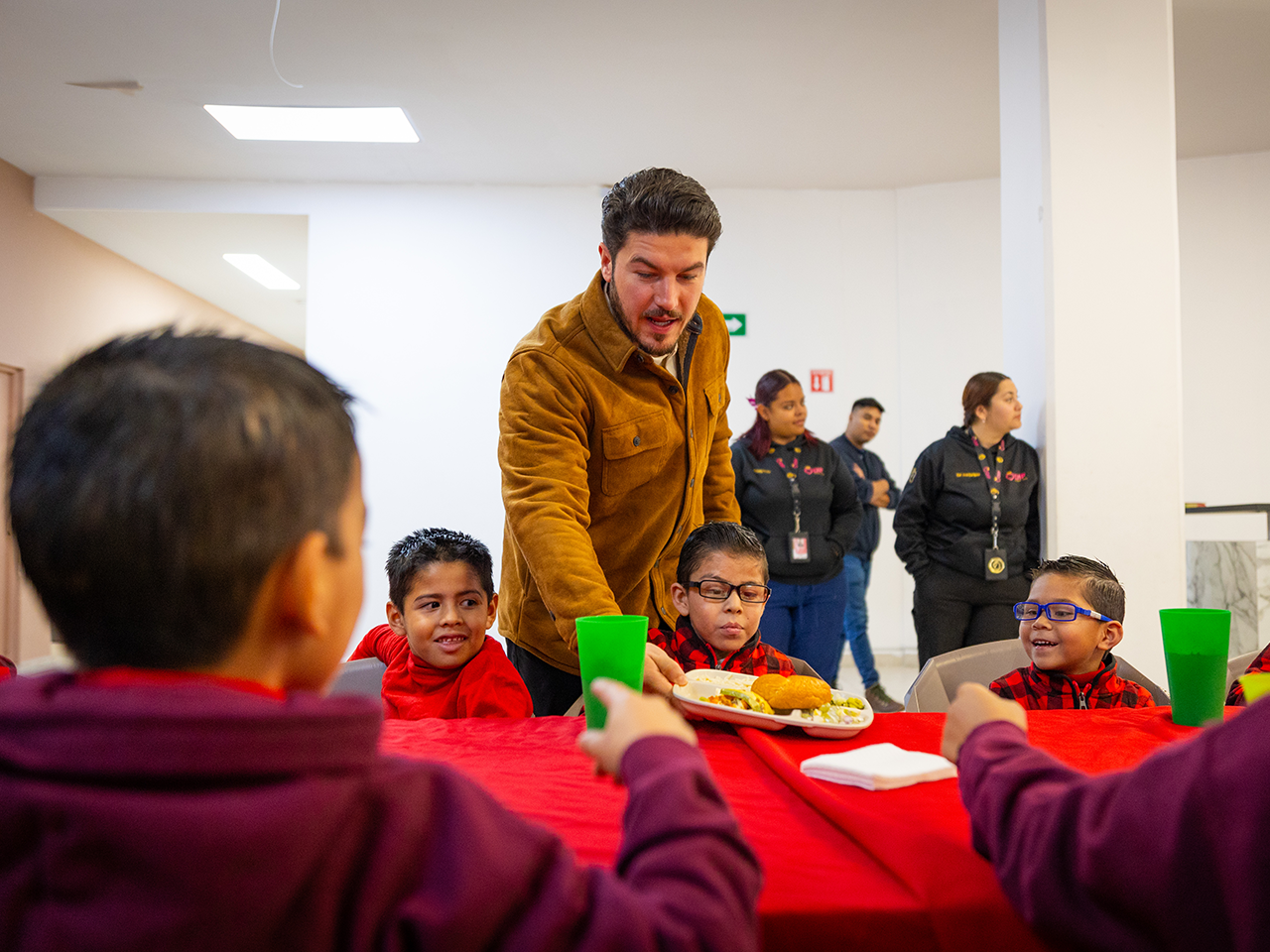 Personalmente el Gobernador se encargó de llevarles los alimentos a los chiquitines hasta su mesa, lo que fue de su agrado.