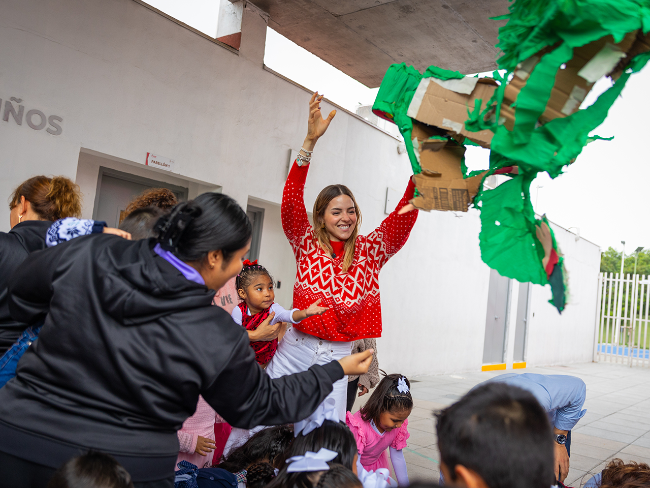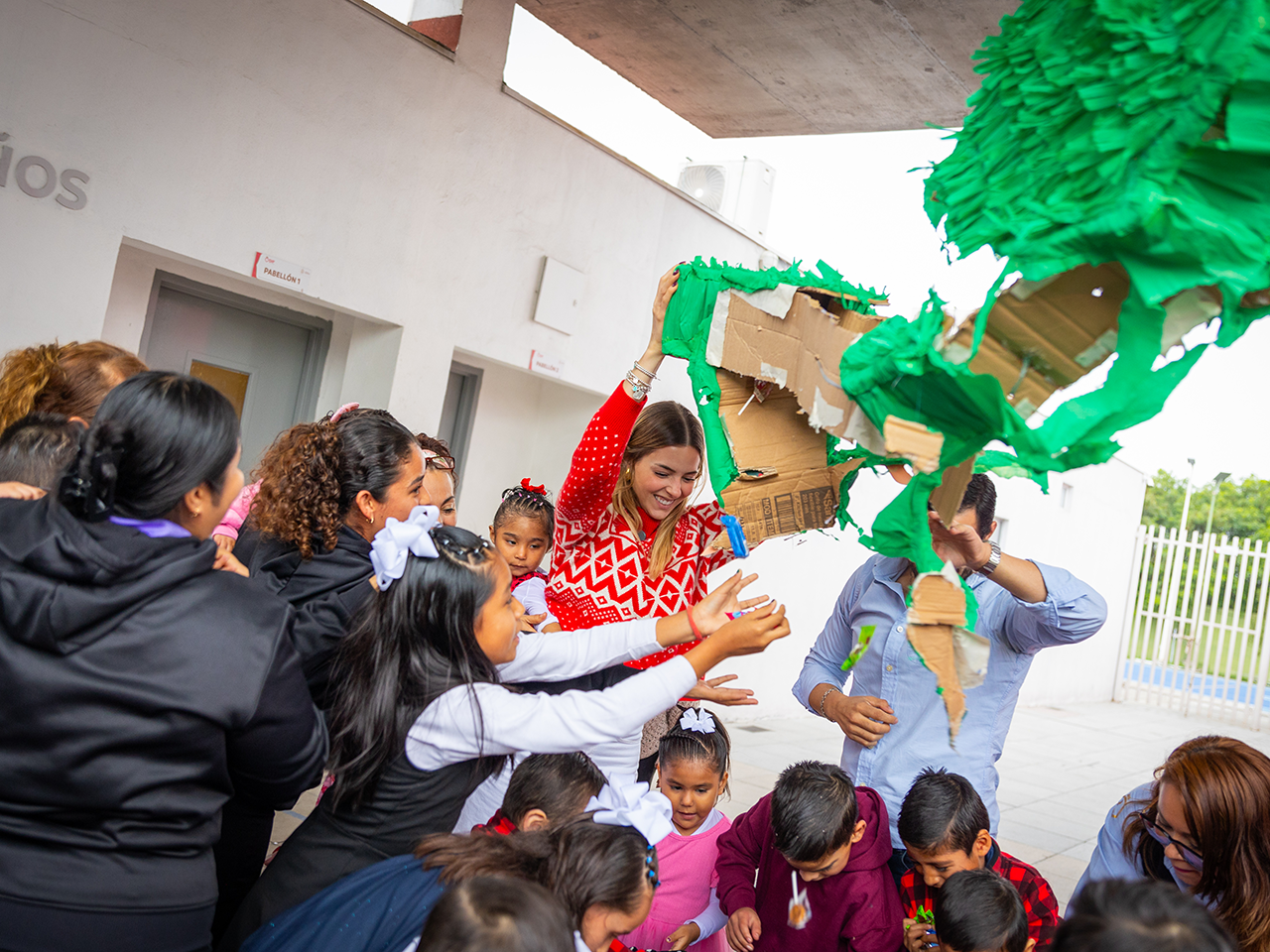 Como no podía faltar en una posada navideña, los chiquitines pasaron uno a uno a pegarle a la tradicional piñata, la cual previamente fue llenada por la titular de Amar a Nuevo León de dulces y golosinas.