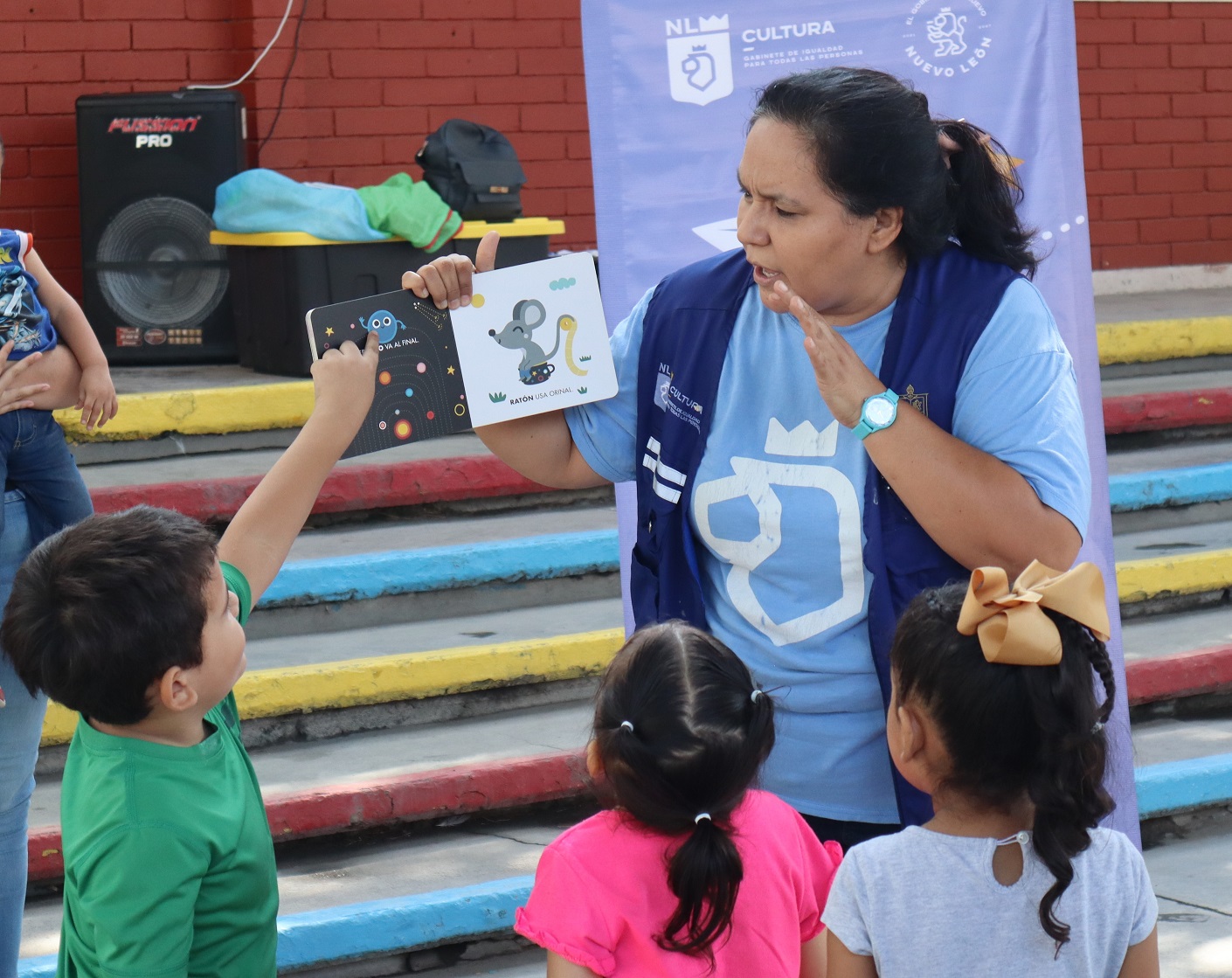 Entre los resultados observados por el equipo de Mediadores Culturales con la población atendida, destaca el notable interés que las niñas y los niños han desarrollado en los libros y el juego. Aunque aún no saben leer, comparten creativamente cuentos a través de imágenes, mostrando imaginación y creatividad.