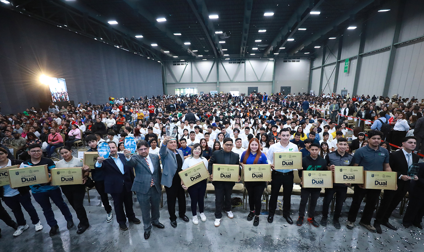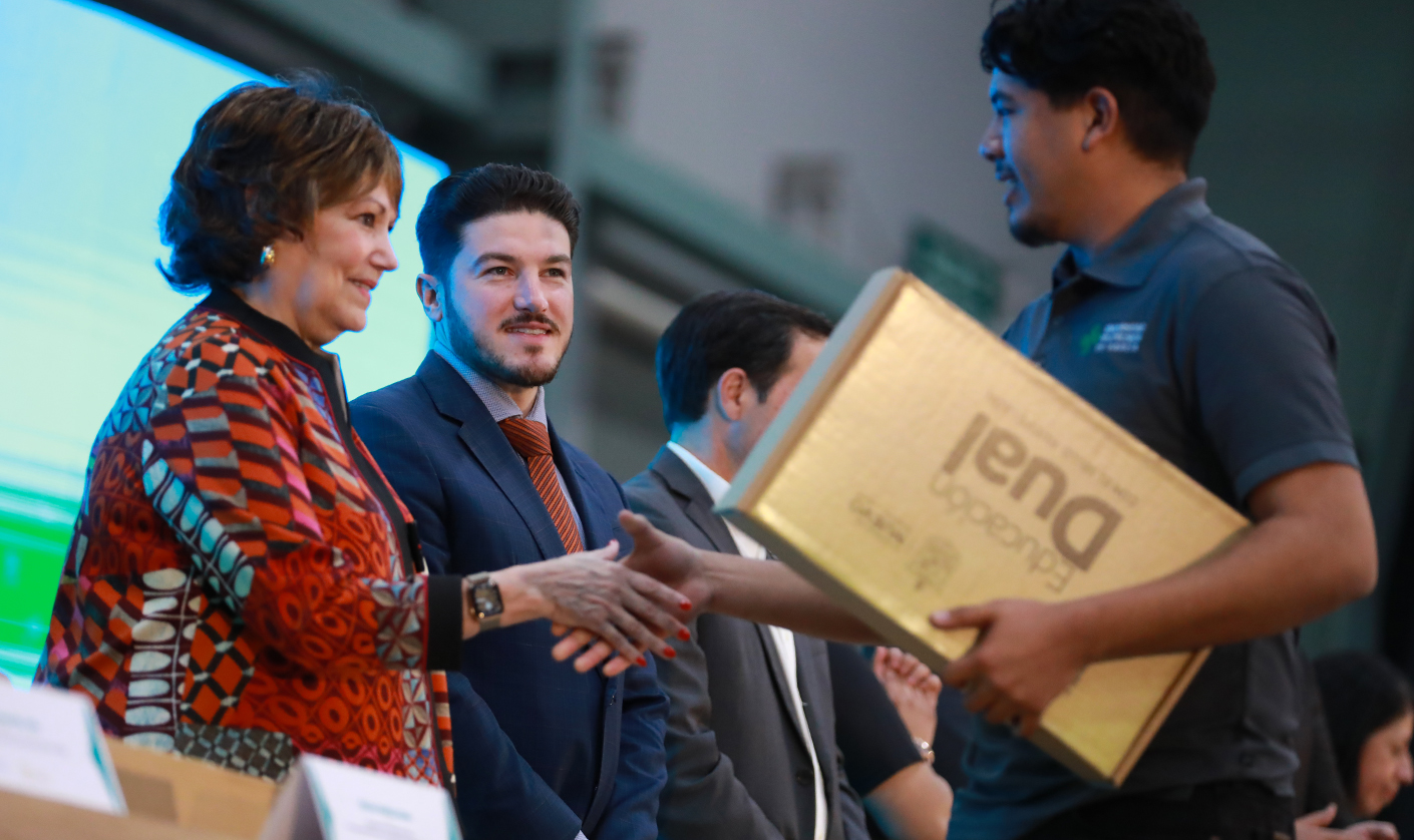 Durante la entrega de las computadoras, se reconoció a los planteles y empresas que captaron el mayor número de estudiantes en la modalidad dual durante este ciclo escolar. Los planteles reconocidos son: el Colegio de Educación Profesional Técnica del Estado de Nuevo León, Plantel 038, Lic. Raúl Rangel Frías; la Universidad Politécnica de Apodaca; y el Colegio de Estudios Científicos y Tecnológicos del Estado de Nuevo León, Plantel Pesquería. Asimismo, las empresas destacadas son: Daehan México, Flex-Tec México y Maquinados Técnicos Computados.