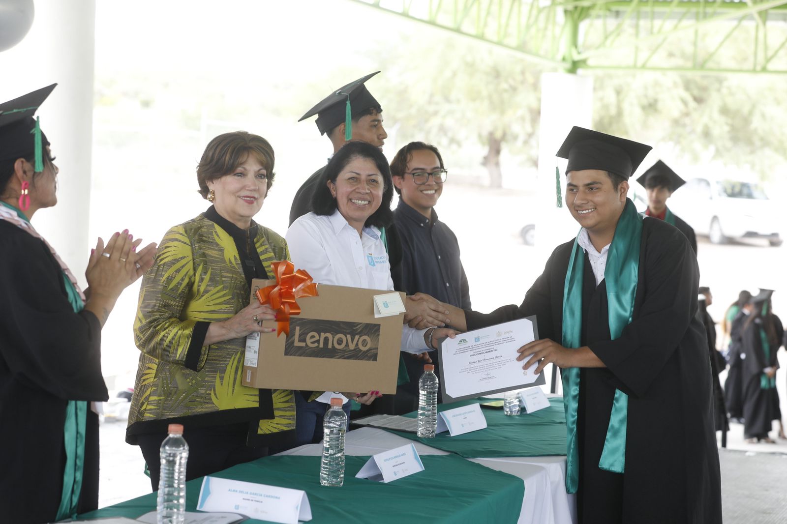 Durante una gira de trabajo por los municipios de Dr. Arroyo y Galeana, la titular de Educación, Sofialeticia Morales Garza, otorgó certificados a los graduados y a quienes obtuvieron los primeros lugares de generación entregó una computadora portátil que utilizarán en sus estudios superiores.