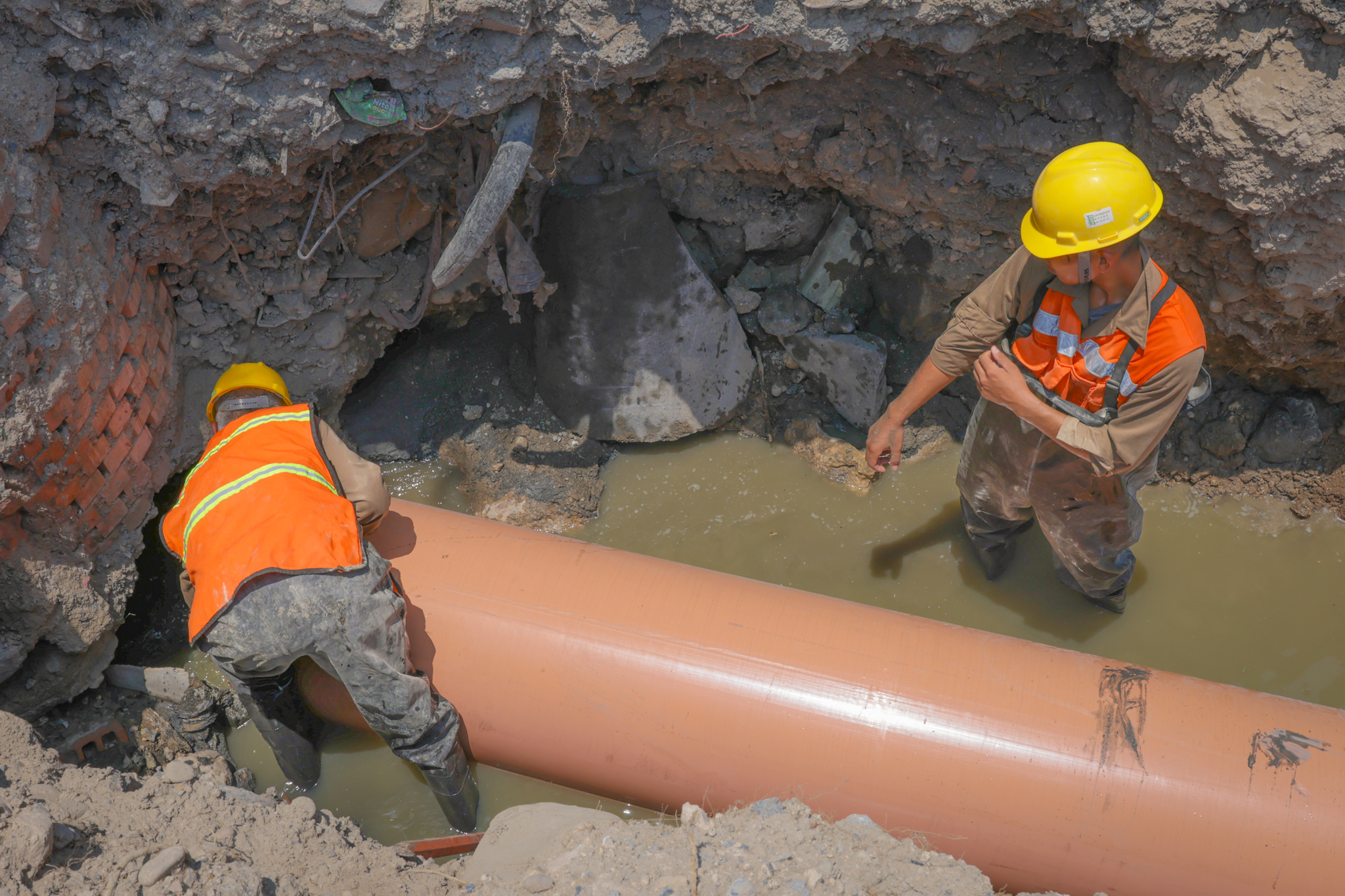 Las cuadrillas de distribución y alcantarillado, trabajan durante varias horas ante las altas temperaturas, excavando zanjas, destapando drenajes y reemplazando tuberías dañadas.