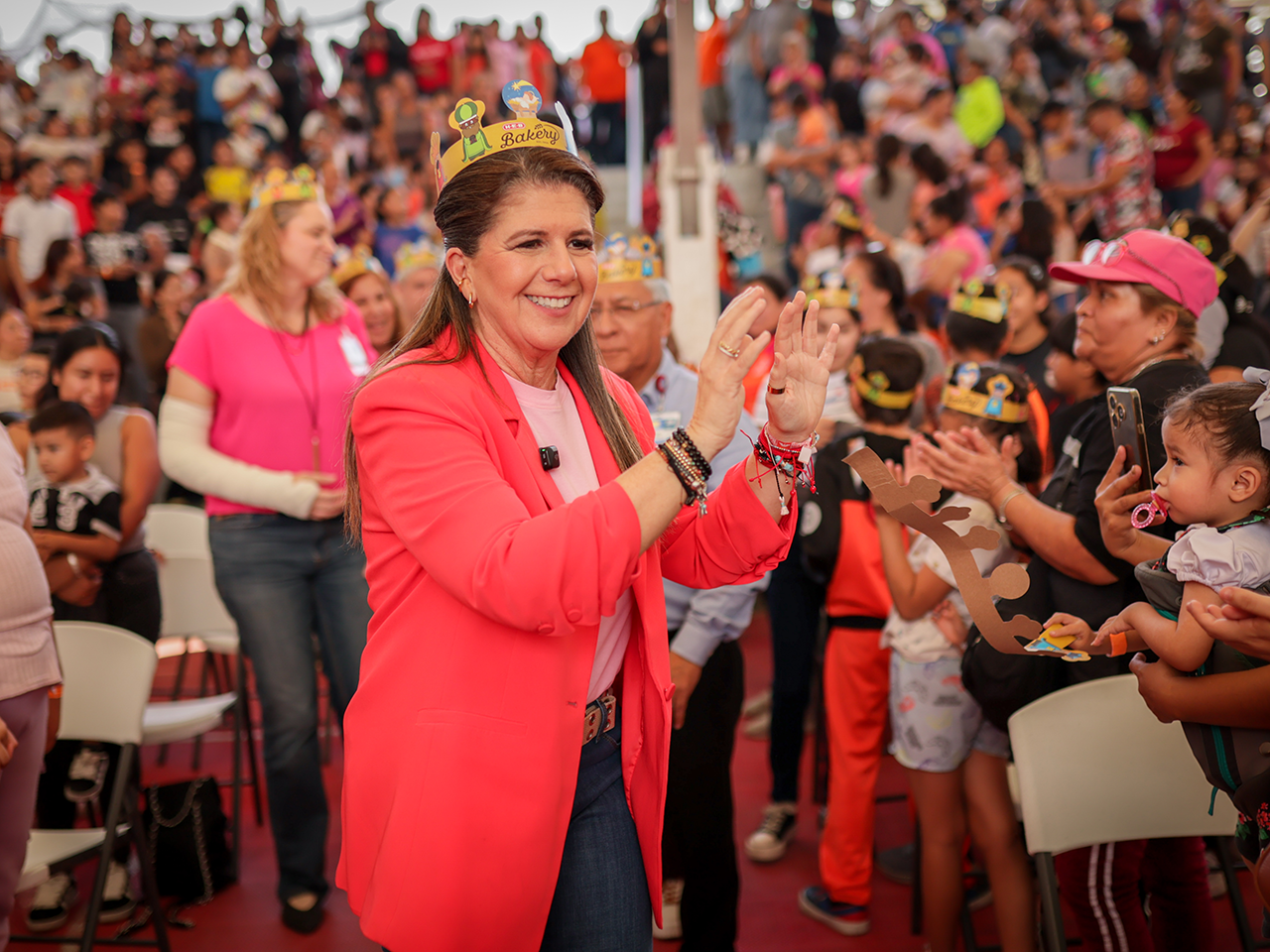 Durante su mensaje de año nuevo dirigido a los vecinos del Centro Comunitario, la Secretaria de Igualdad e Inclusión agradeció la colaboración de HEB en los últimos cuatro años, tanto para la celebración de Día de Reyes, como para talleres y otras actividades que se realizan desde la dependencia, para fortalecer el sentido de comunidad e impulsar la unidad familiar.