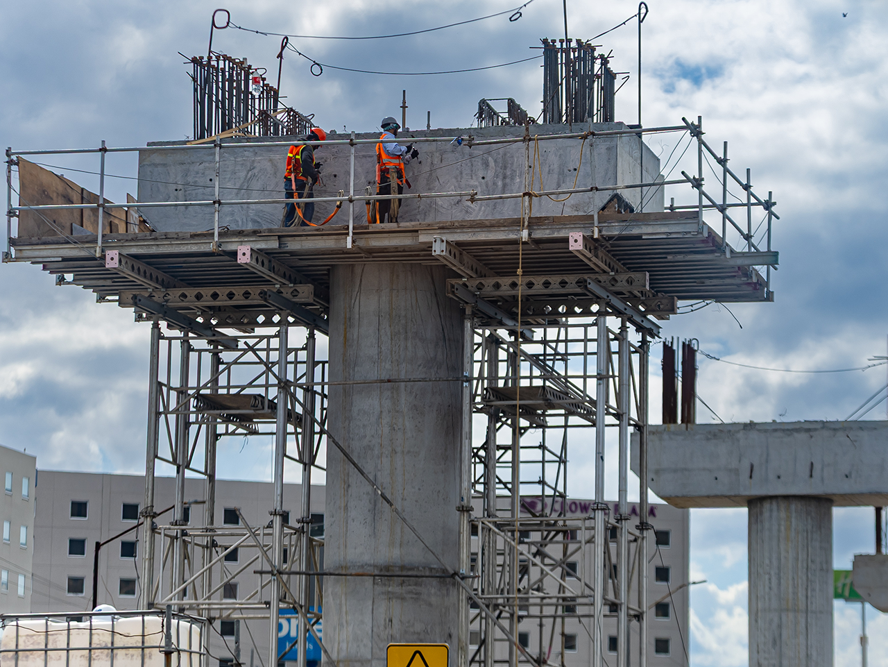 “Estamos desarrollando un proceso constructivo a base de cimentación profunda, a través de pilas, dados de conexión en cimentación con las propias columnas, para recibir capiteles y posteriormente las trabes de rodadura por donde circulará el monorriel”, explicó Ibargüengoytia Borrego.