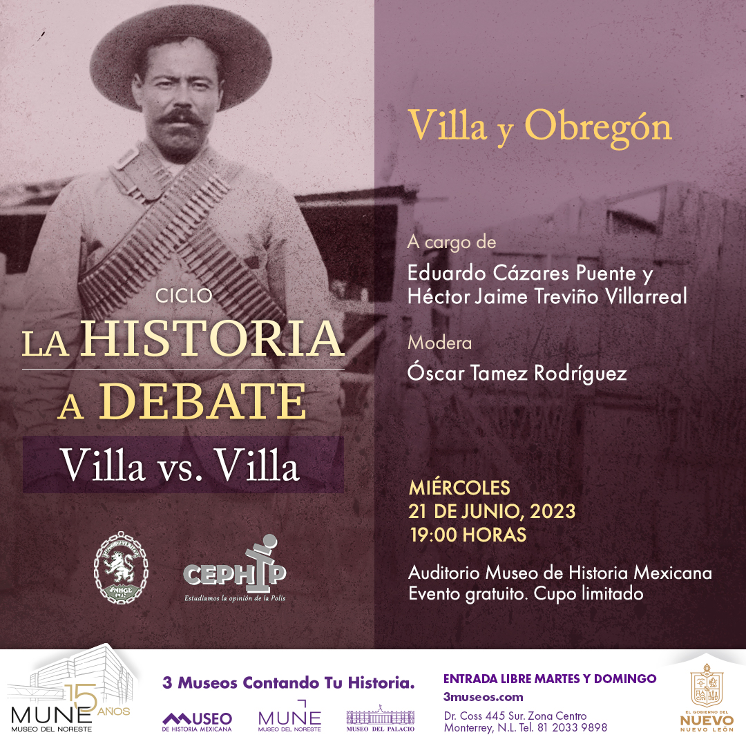 Los invitados a debatir son Eduardo Cázares Puente, quien analizará la actuación y personalidad de Álvaro Obregón y Héctor Jaime Treviño Villarreal, quien hará lo propio con el Centauro del Norte.