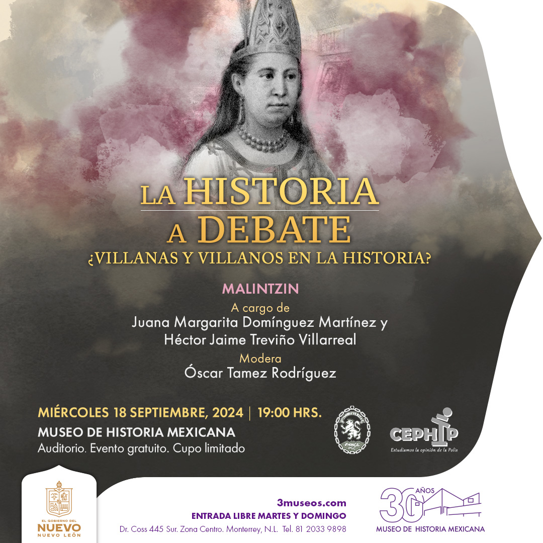 Monterrey, Nuevo León.- Malitzin, una de las figuras más controvertidas de la Conquista, a menudo retratada como traidora y cuya imagen ha oscilado entre la condena y la reivindicación, será el tema central del ciclo “Historia a Debate: ¿Villanas y villanos en la historia?”, el próximo 18 de septiembre a las 19:00 horas en el Museo de Historia Mexicana.
