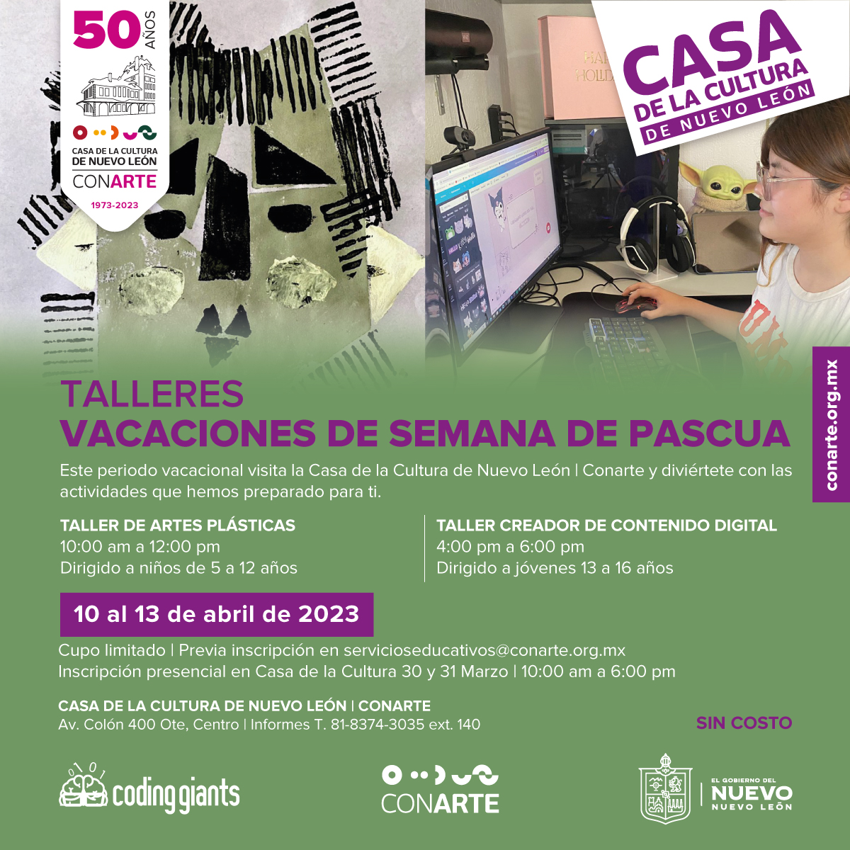 Por otra parte, durante esta temporada vacacional los espacios expositivos de las naves del Centro de las Artes I CONARTE y la Casa de la Cultura de Nuevo León I CONARTE, estarán abiertos al público en un horario de martes a domingo de 10:00AM a 8:00PM, cerrado los lunes.