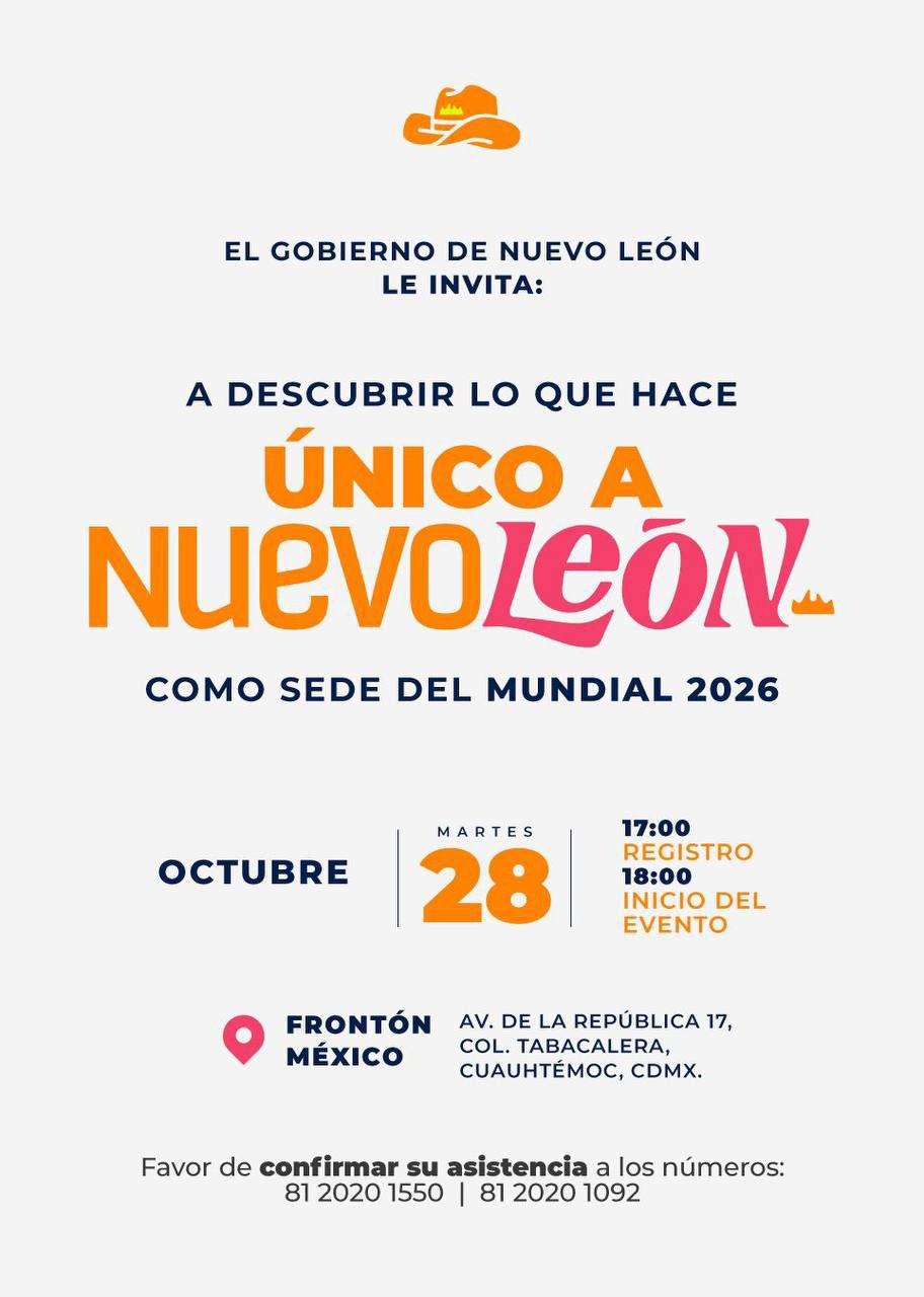 Para ello, el Gobernador Samuel Alejandro García Sepúlveda presentará las características que hacen único al estado para recibir la Copa del Mundo en el Centro de Entretenimiento, Frontón México en la Ciudad de México a las 18:00 horas.