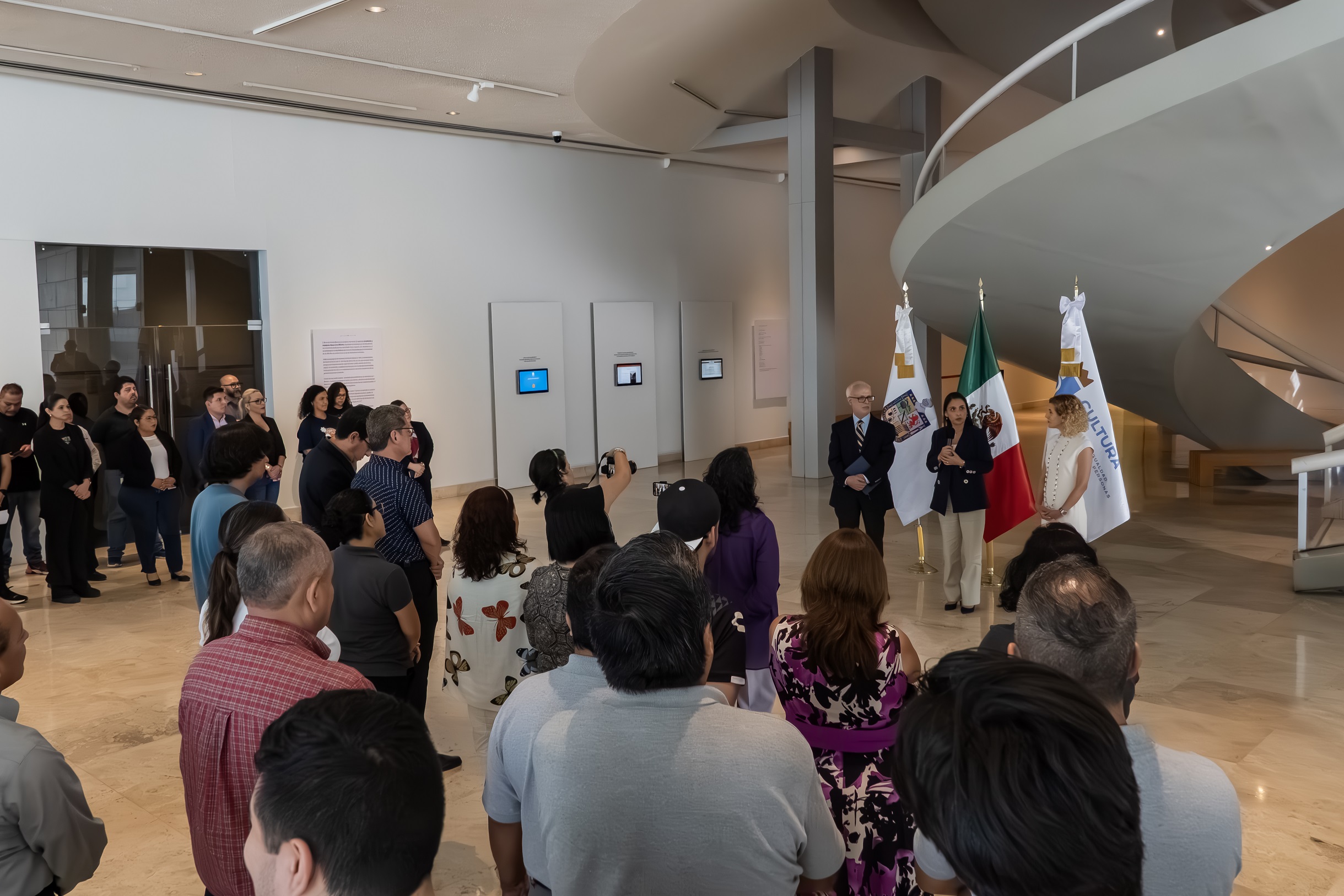 En la presentación del nuevo titular ante el equipo de trabajo de los espacios, acompañó a la titular de la Secretaría de Cultura la presidenta del Patronato Consultivo del Museo de Historia Mexicana, Claudia Yarte Sada.