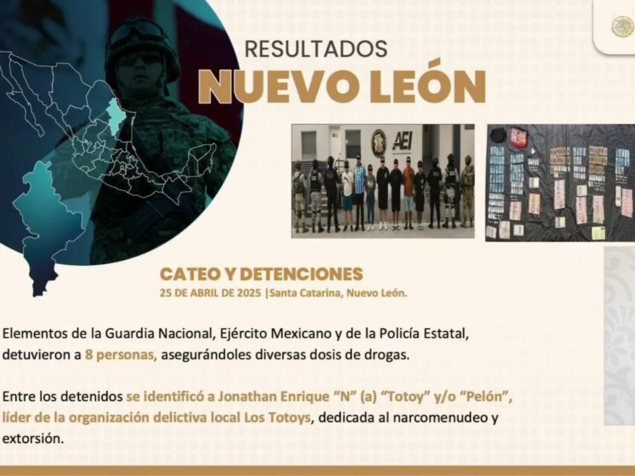 Destaca Gobierno Federal detenciones clave en Nuevo León