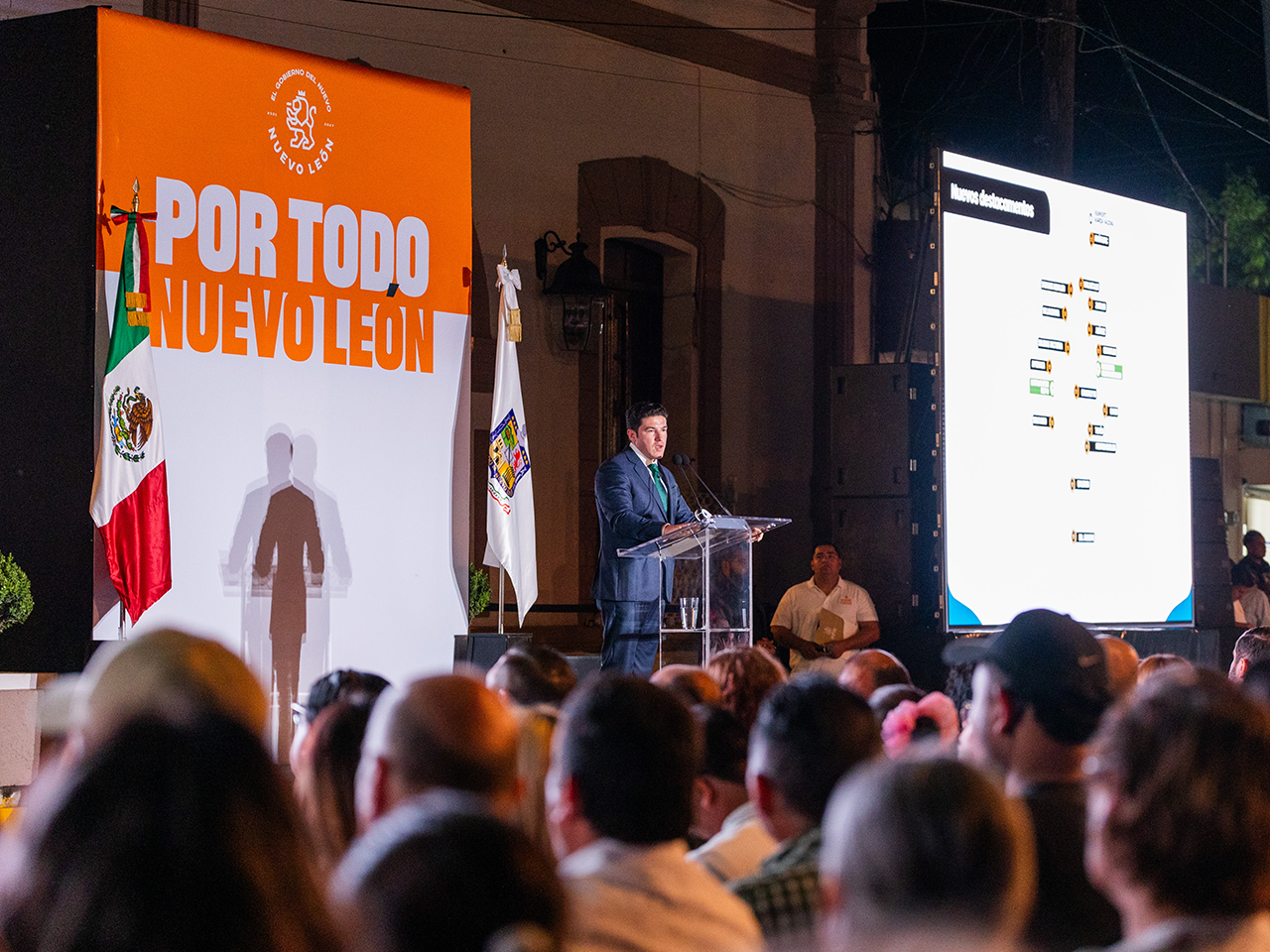 “Y por eso aquí hicimos un destacamento en Villaldama para 500 policías que será el centro de mando de todo el norte, que junto con la de Salinas, Cerralvo, Vallecillo y Anáhuac, de cero policías que había en el norte de Nuevo León hoy tenemos mil 500, por eso decimos que el Norte de Nuevo León está blindado”.