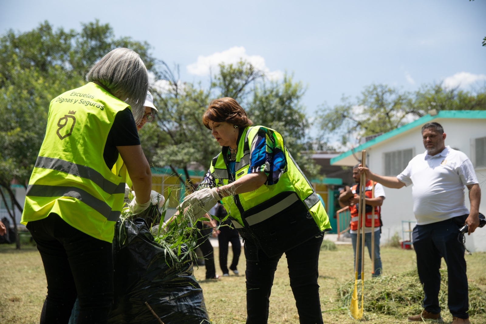 La Secretaria de Educación, Sofialeticia Morales Garza, reconoció la participación de los diferentes sectores que se están sumando a las actividades y en especial a la labor que está desempeñando el personal de la Secretaría de Igualdad e Inclusión, quienes se suman todos los días a los trabajos de limpieza y deshierbe.