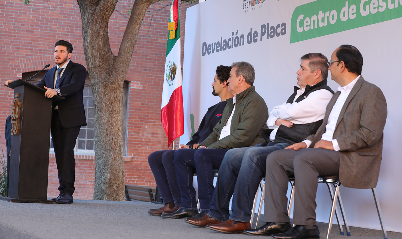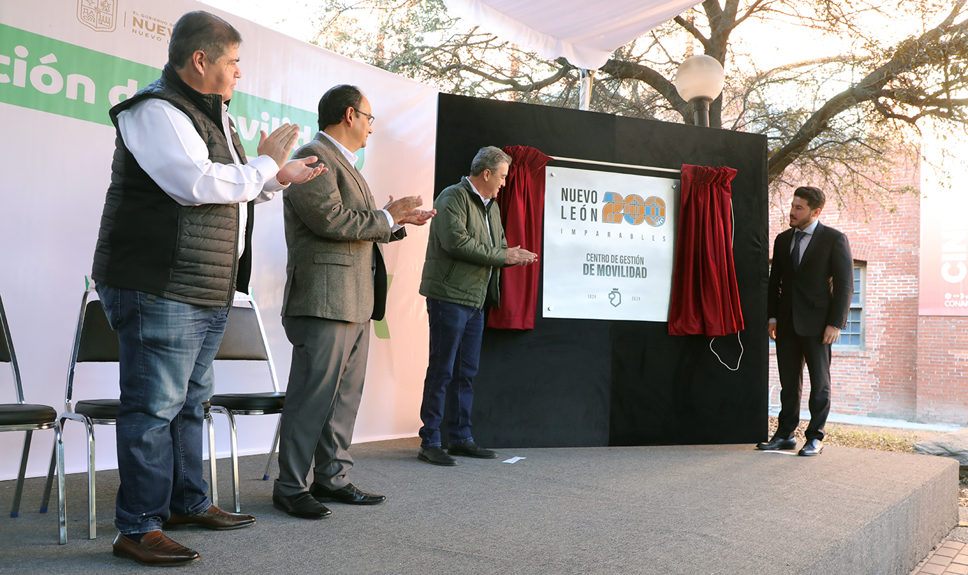 Devela Samuel García placa conmemorativa de los 200 años de NL en el Centro de Gestión de Movilidad