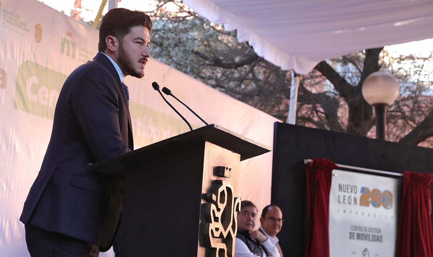Monterrey, Nuevo León.- En la develación de la placa de los 200 años de Nuevo León como Estado libre y soberano, en el Centro de Gestión de Movilidad (CGM), el Gobernador Samuel Alejandro García Sepúlveda dijo que el reto de su Administración es apostarle al transporte público masivo como alternativa para reducir el tráfico vial.