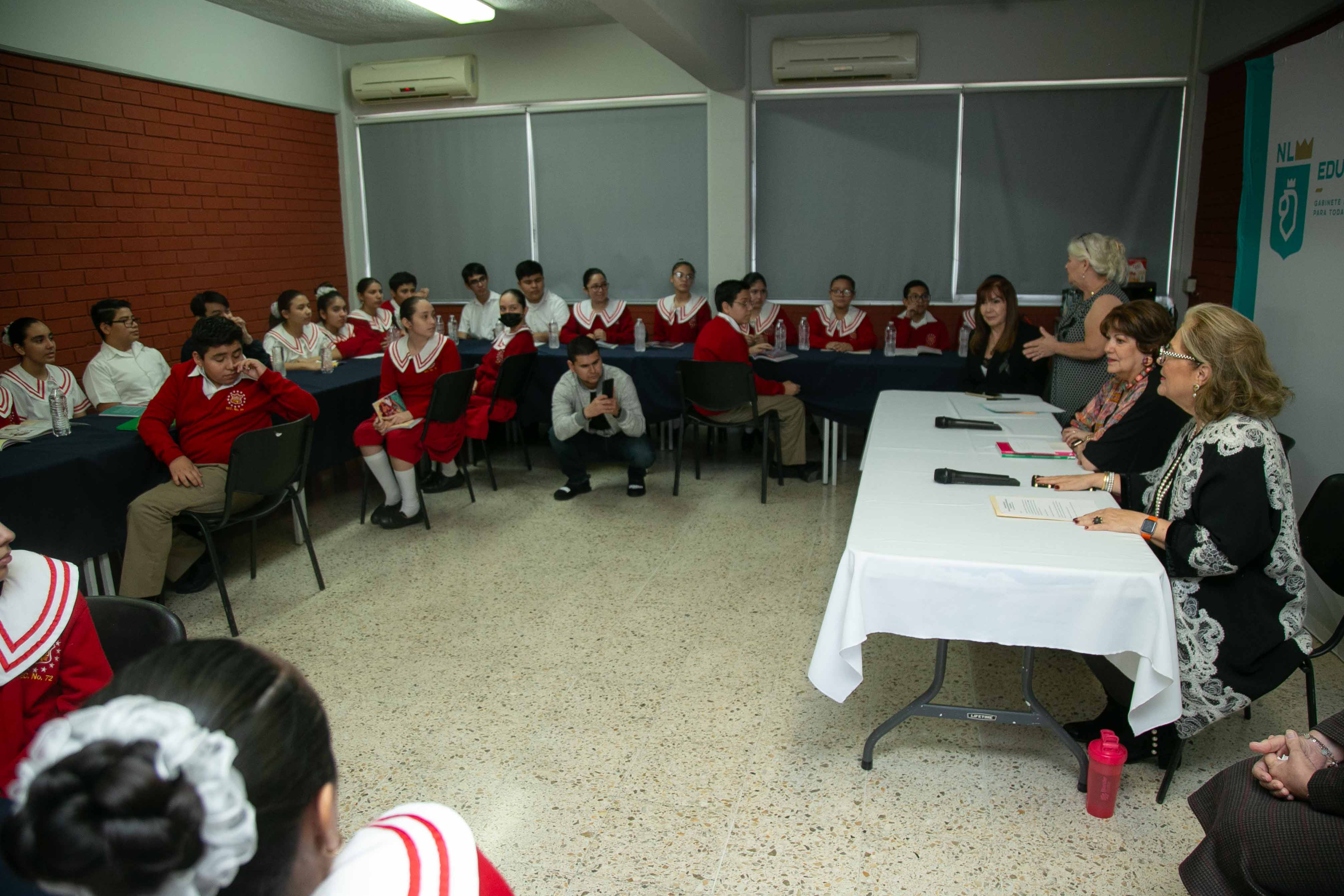 Monterrey, Nuevo León.- Como parte de las acciones para sensibilizar a la comunidad educativa acerca de las figuras femeninas que han forjado la identidad nacional, autoridades de la Secretaría de Educación de Nuevo León y la Fundación México Monterrey llevaron a cabo un círculo de lectura con estudiantes de secundaria. En este encuentro, dialogaron y reflexionaron sobre los contenidos de los libros “Heroínas de la Independencia de México” y “Defensoras de Derechos Humanos”.
