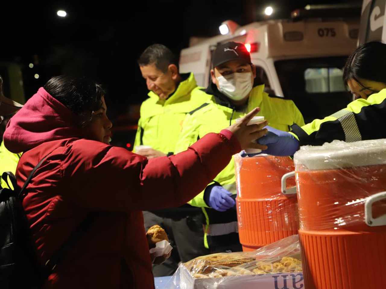 Los equipos acudieron a diversos puntos de la ciudad con el operativo, brindando chocolate caliente, café, pan, colchonetas y cobijas a las personas que se encontraban en las calles por diversos motivos.