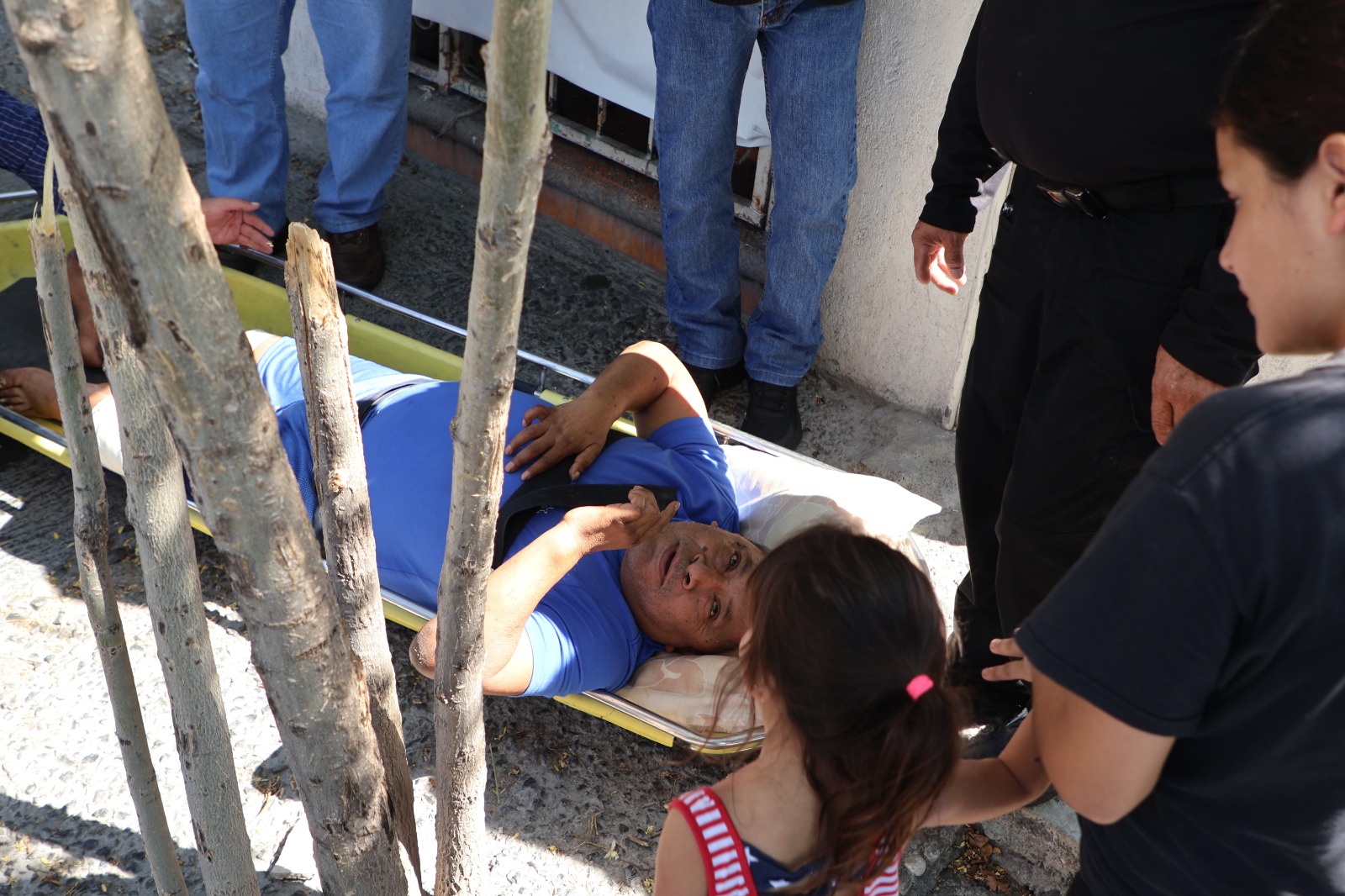 Para el traslado se requirió el apoyo de elementos de Protección Civil Estatal, facilitando una camilla y así poderlo bajar por las escalinatas que dificultaban el acceso al domicilio del señor José.