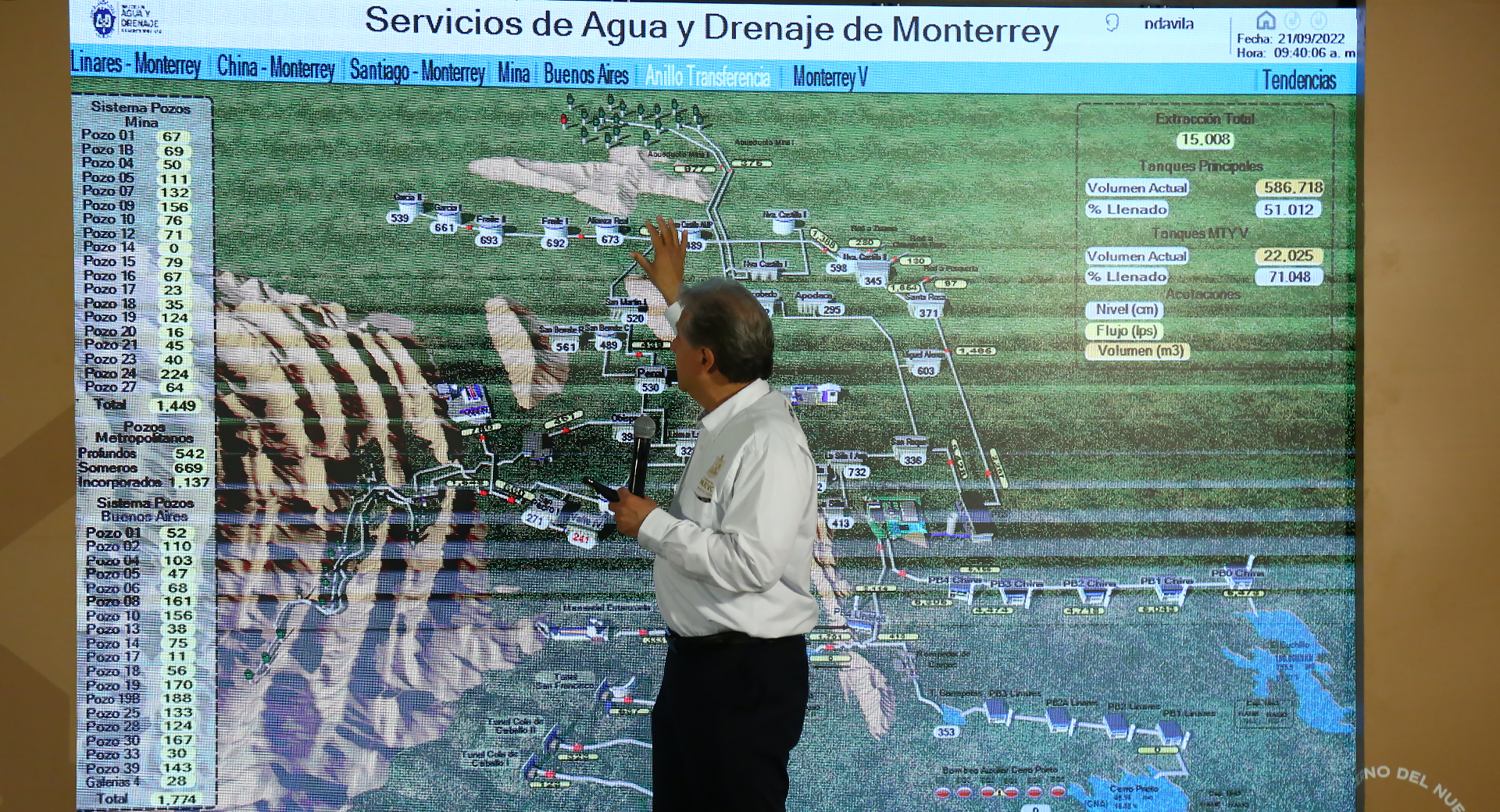 Servicios de Agua y Drenaje de Monterrey señaló que la red de distribución se encuentra operando de forma normal, debido a que las lluvias de semanas pasadas recargaron de forma importante las fuentes de abastecimiento de la ciudad. Adicionalmente, el Programa de Modulación de Presiones lleva un 55% de avance en la ciudad ha ayudado a tener un uso más eficiente del agua y a distribuirla de forma óptima a las zonas más altas o alejadas de la ciudad.
