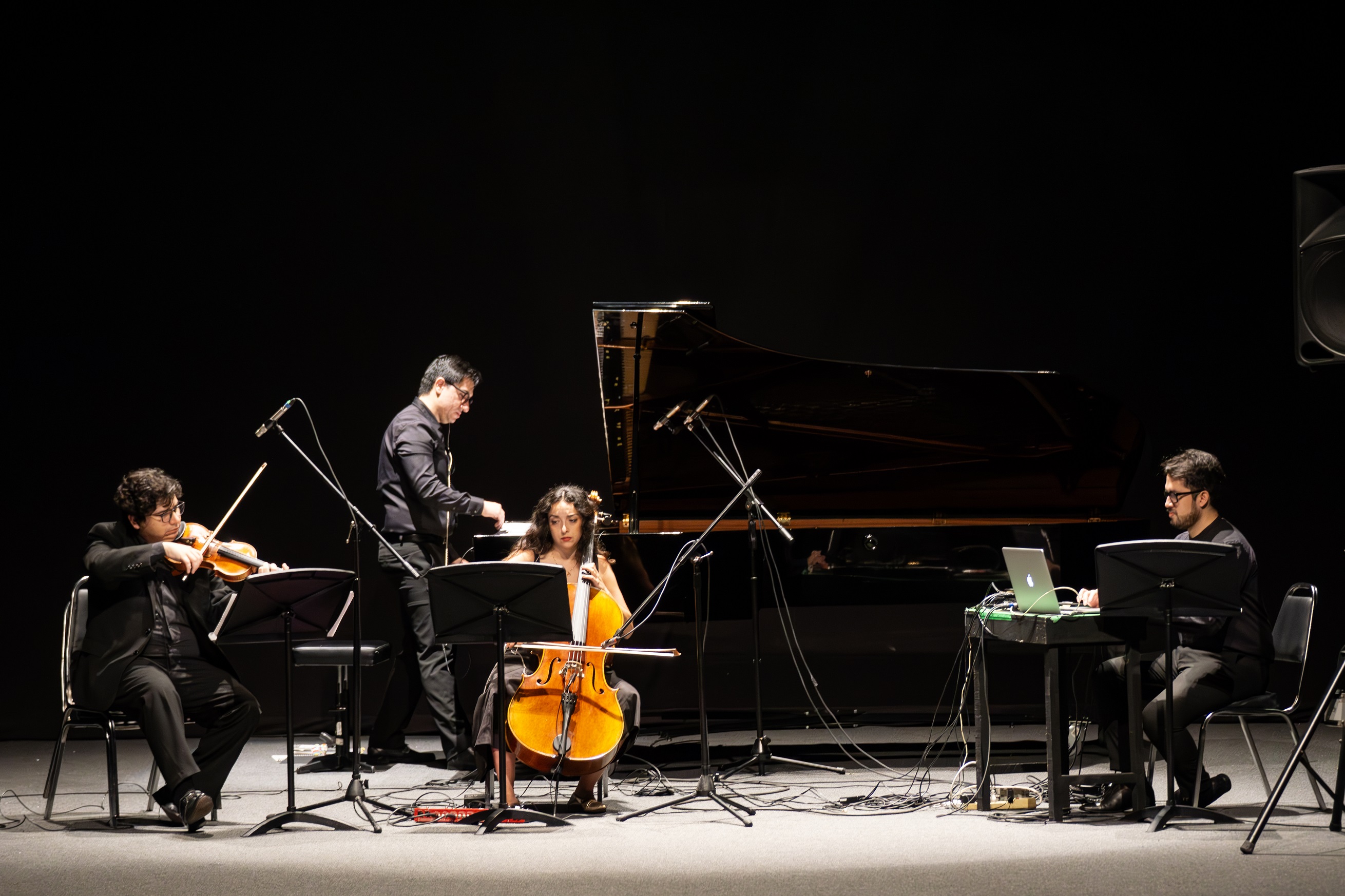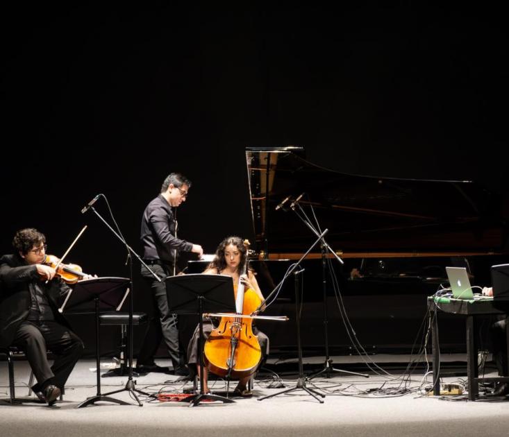 Como parte de la Temporada de Música 2024, el Trío Siqueiros y el artista sonoro Juan Cáceres, presentaron en esta ocasión en el escenario de la Gran Sala del Teatro de la Ciudad el concierto “Acusmática de Cámara”.