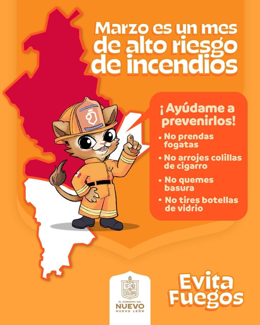 Al considerarse marzo como un mes de alto riesgo de incendios forestales, la Dirección de Protección Civil pide a las y los neoloneses seguir las recomendaciones para su prevención.