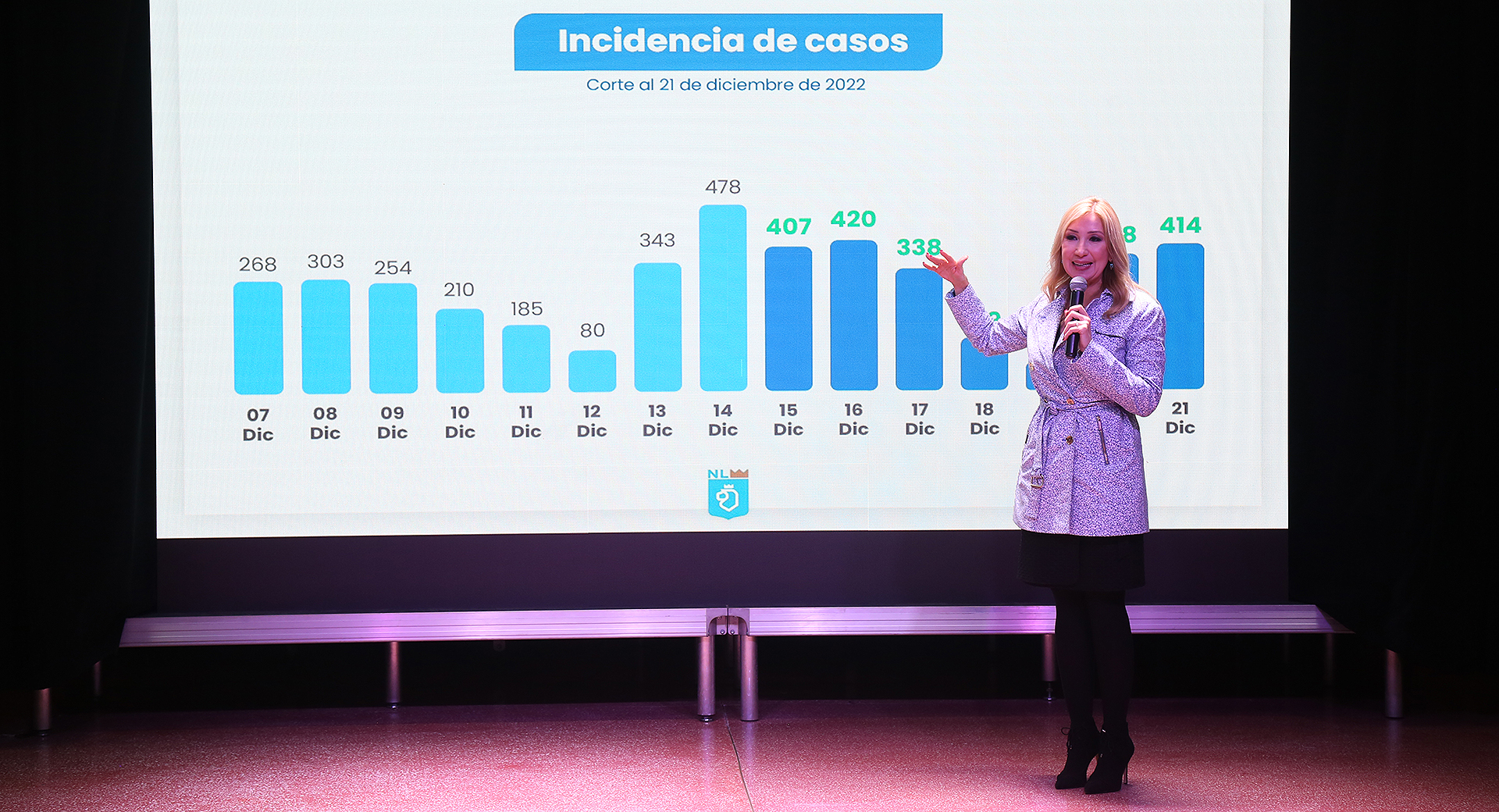 El 21 de diciembre se presentaron 414 nuevos casos y 1 defunción, con 55 personas hospitalizadas, 4 de ellas en terapia intensiva.