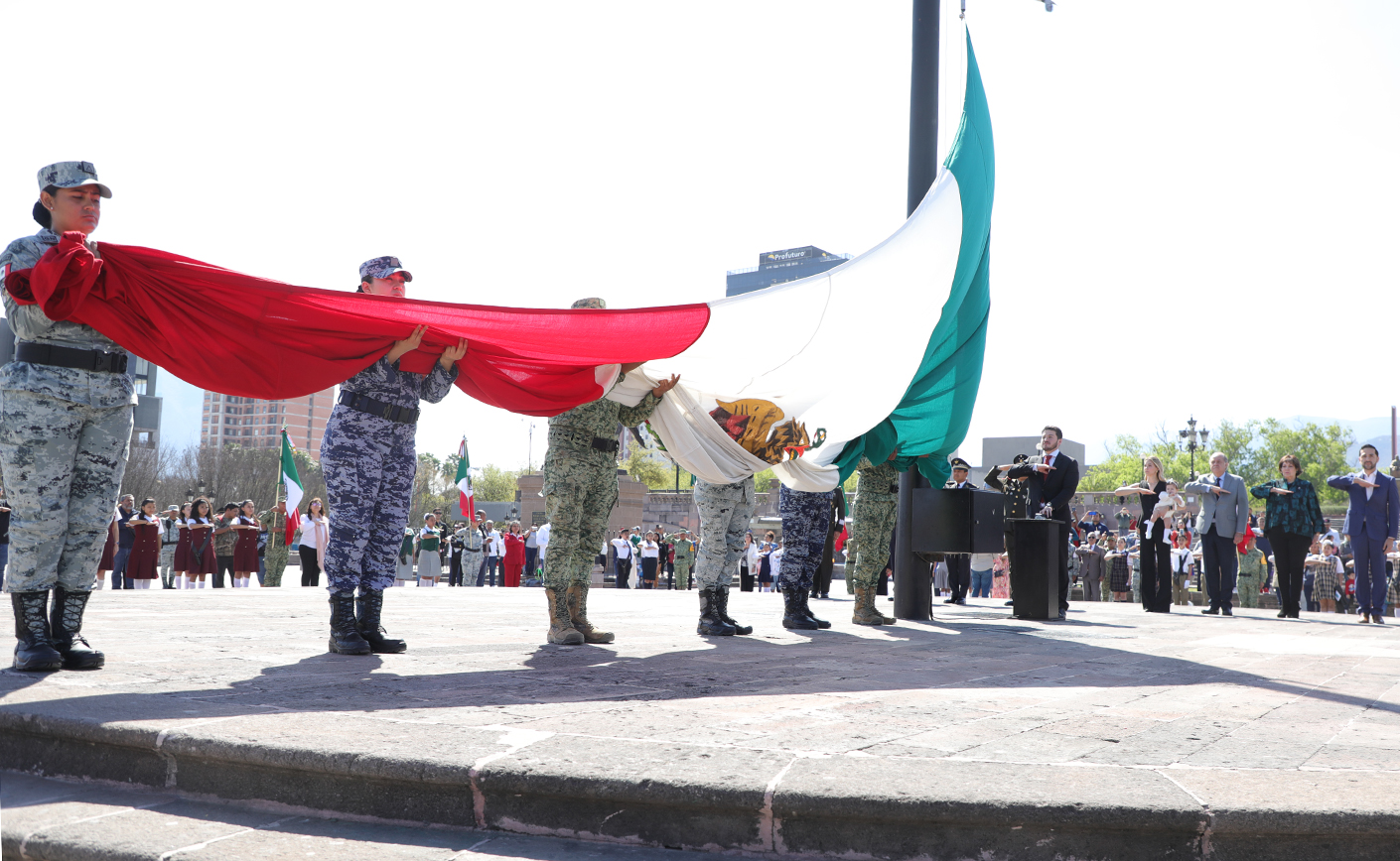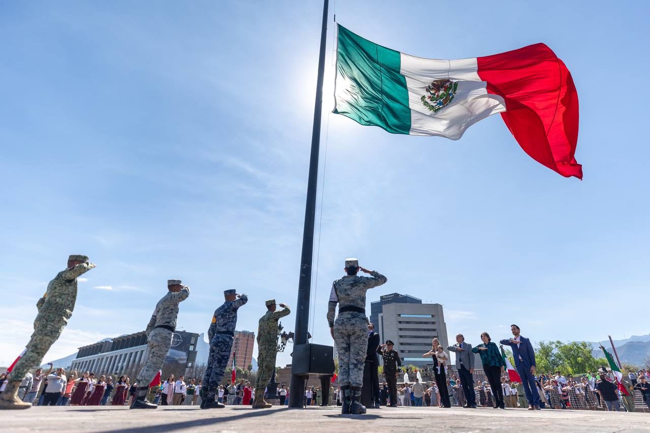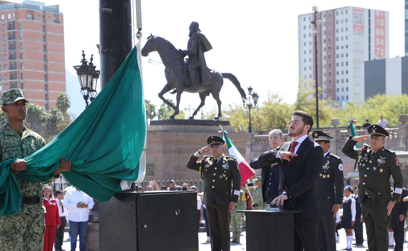 En su mensaje oficial en la ceremonia cívica por el aniversario del Día de la Bandera en la Explanada de los Héroes, en donde izó el lábaro patrio, el Gobernador Samuel García dijo que el significado y el valor de este símbolo patrio va mucho más allá de una fecha oficial que marca el calendario, en sus colores y en su escudo está representada la lucha de más de 200 años de todo un país por la soberanía, la libertad y la justicia.