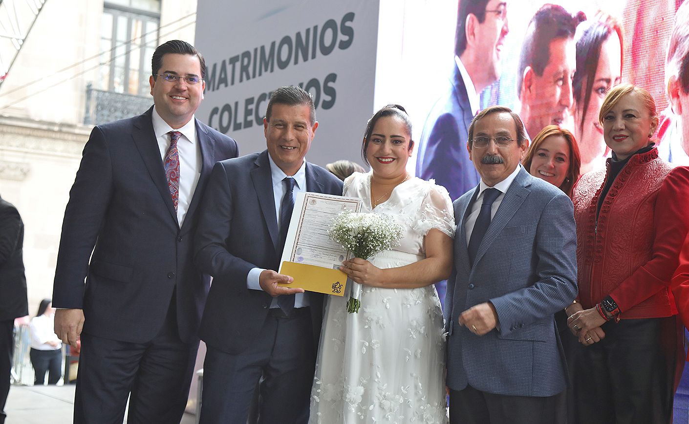 Al final de la ceremonia tanto el director del Registro Civil como César Javier Gómez, representante del Secretario General de Gobierno, Javier Navarro, y las secretarias de Igualdad e Inclusión, Martha Herrera; de Turismo, Maricarmen Martínez; de las Mujeres, Graciela Buchanan, entregaron las respectivas Actas de Matrimonio a las parejas contrayentes.